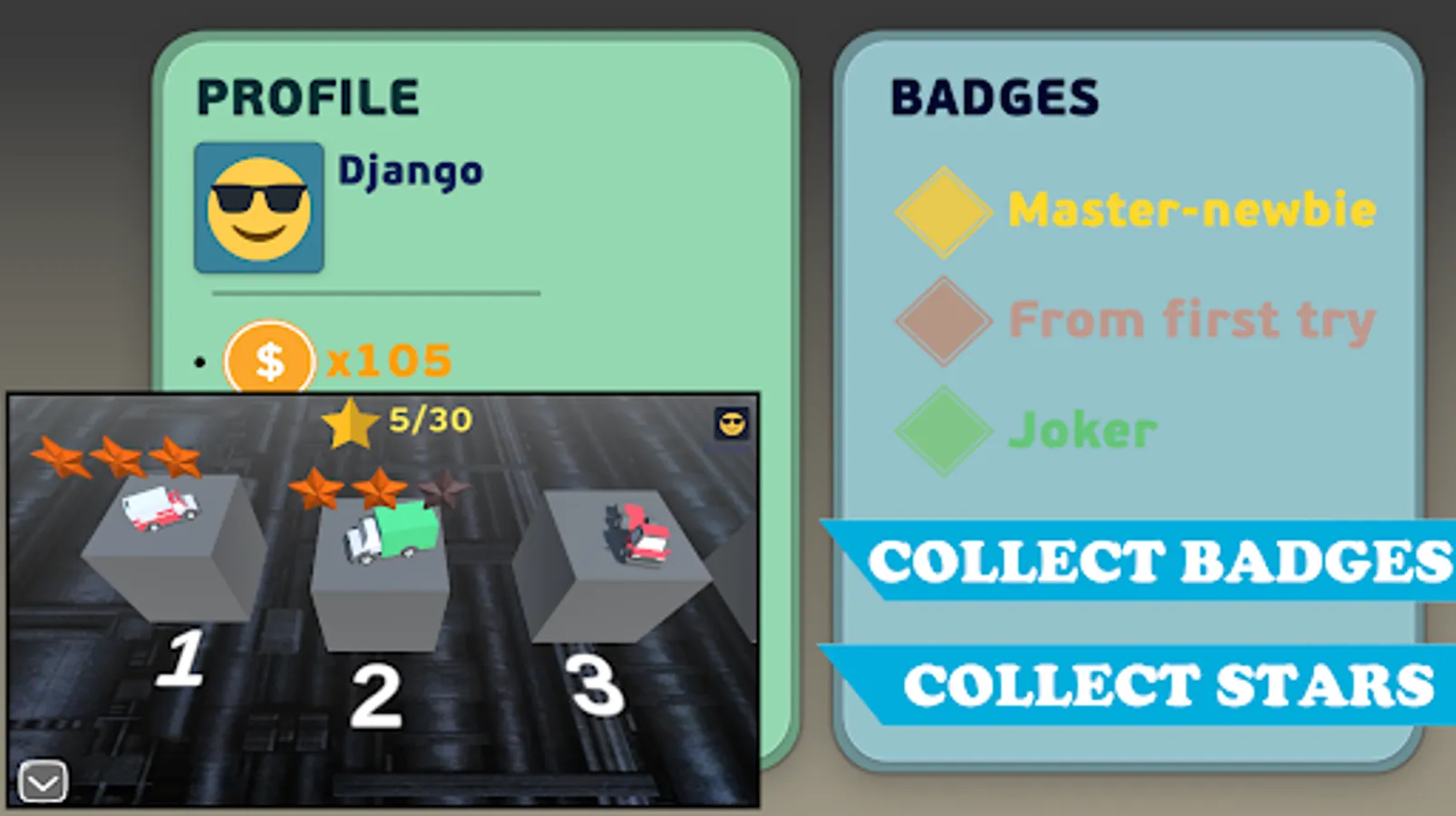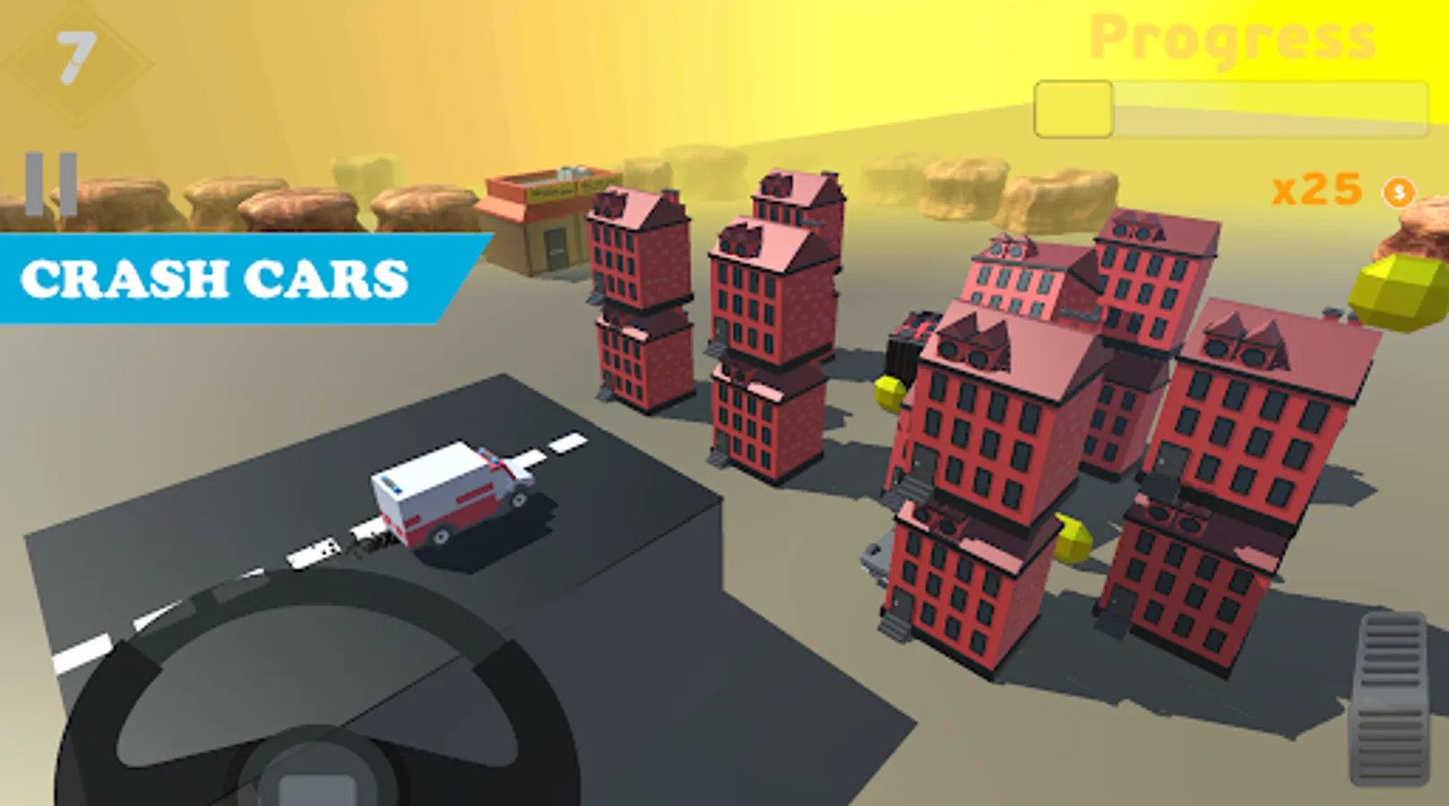 Crash buildings by jumping with heavy cars from ramp. Different levels and building combinations. A lot of various cars, which you can collect by completing levels. Also you can buy cars by collecting coins on level and using them on the shop. Fill your virtual shelf with all possible cars.
