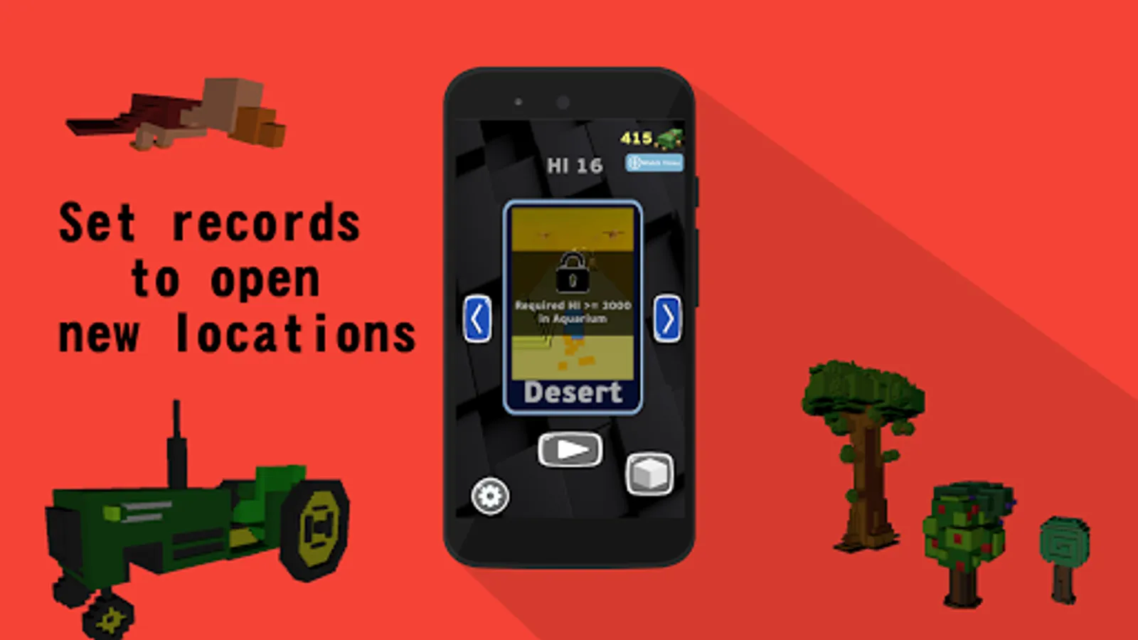 Geometryy 3D is an endless game in which you can explore a lot of different locations. Try Cyberpunk, Jurassic period and many other worlds. Set high records to open some of them, collect money to buy new skins in the shop and just have fun!