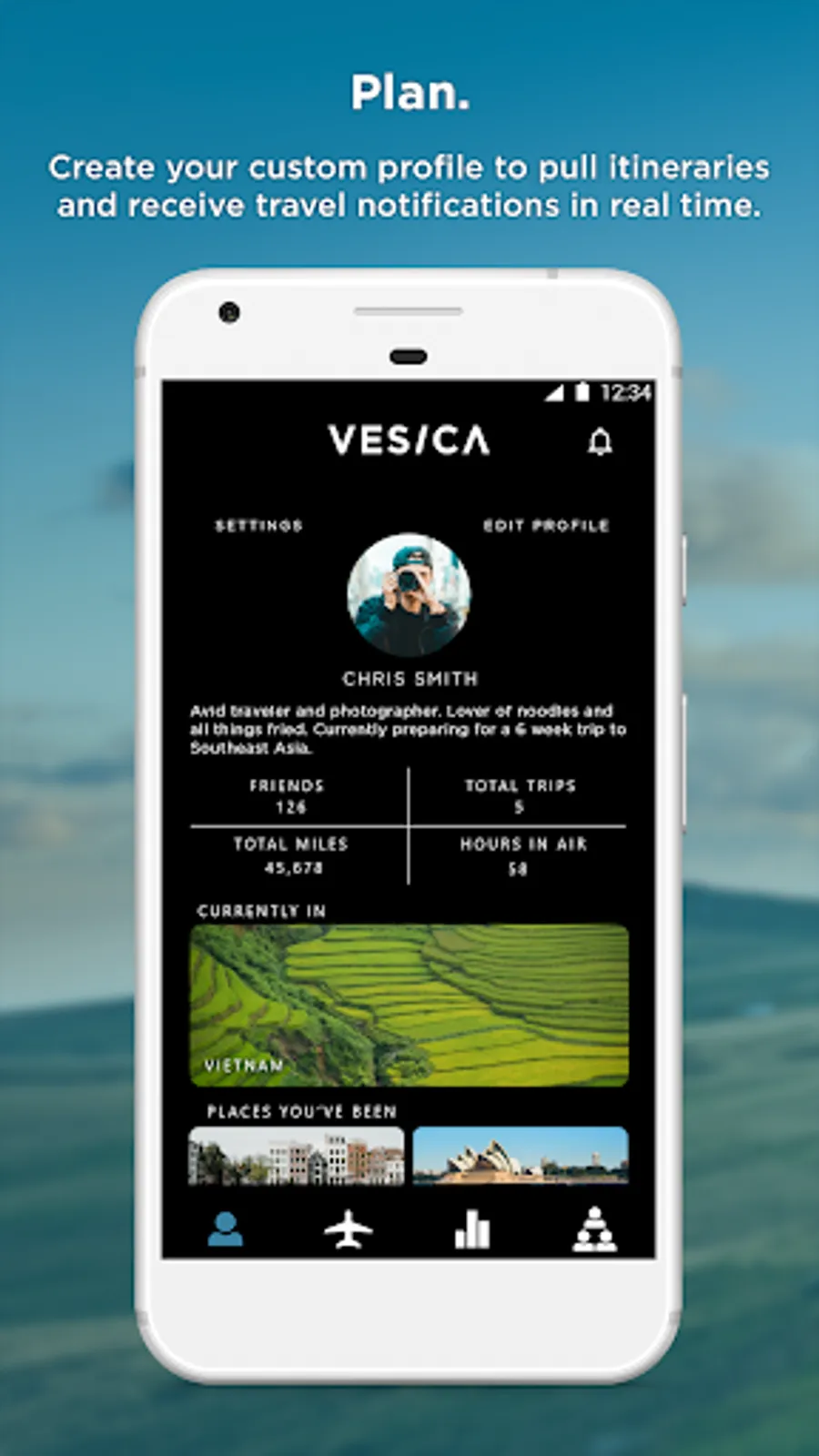 Create your VESICA profile to automatically pull itinerary, update you on weather and give you