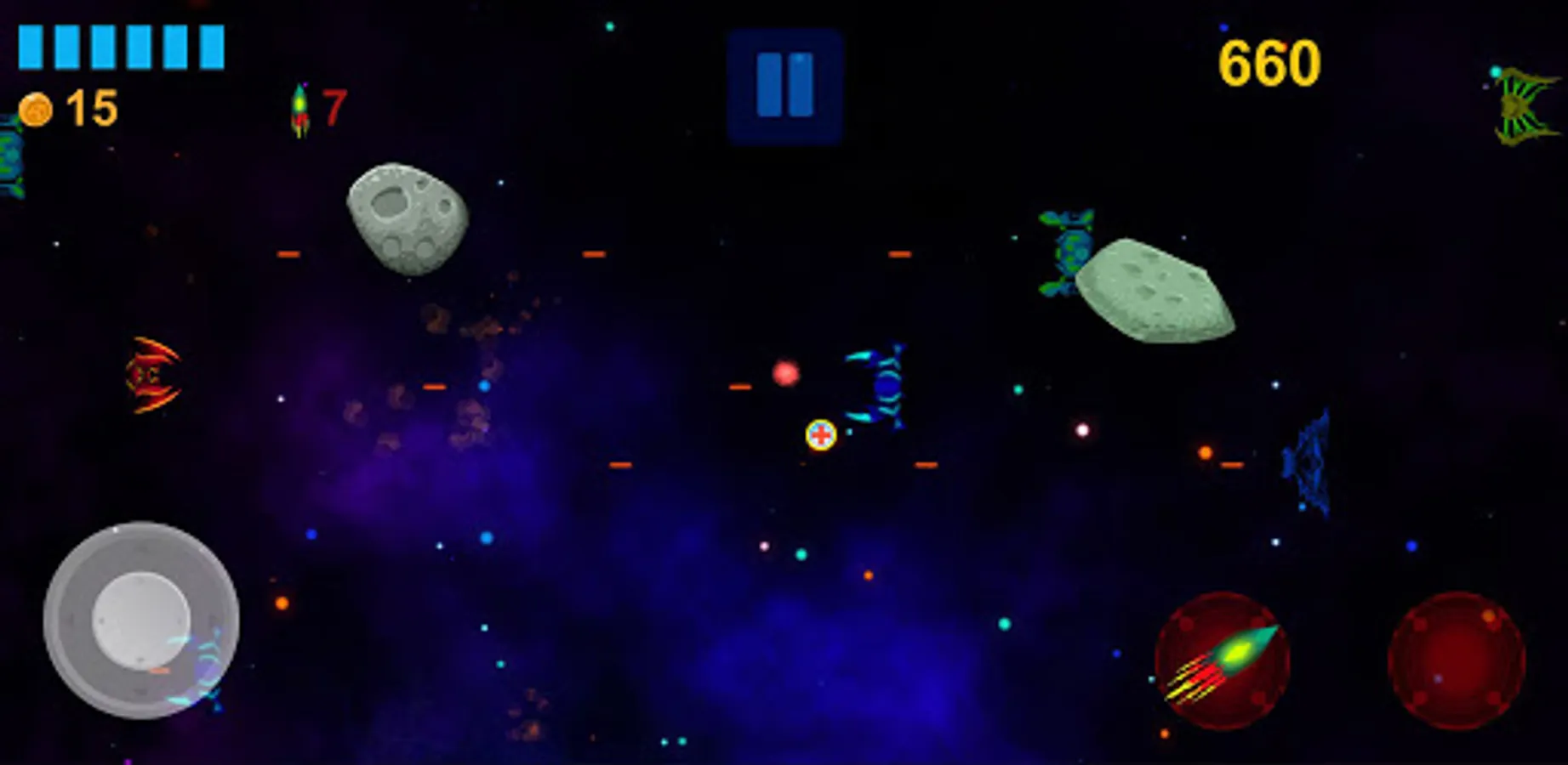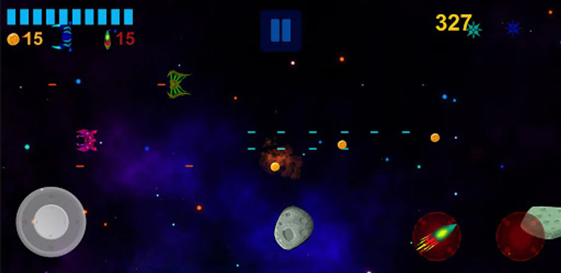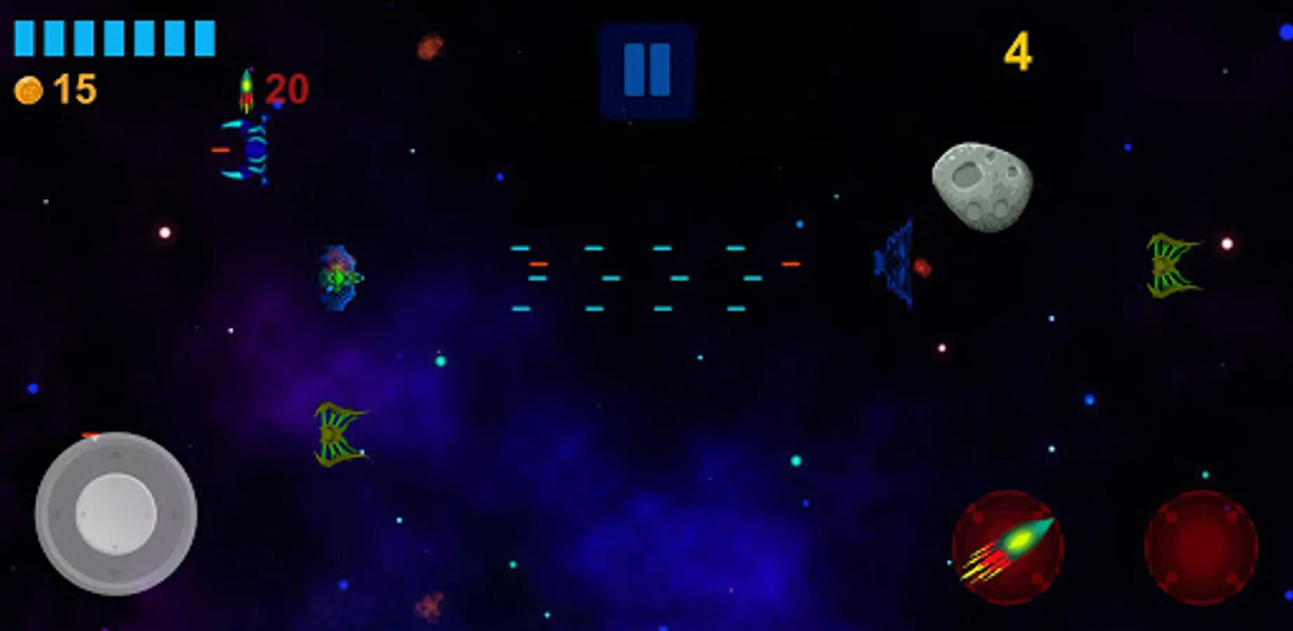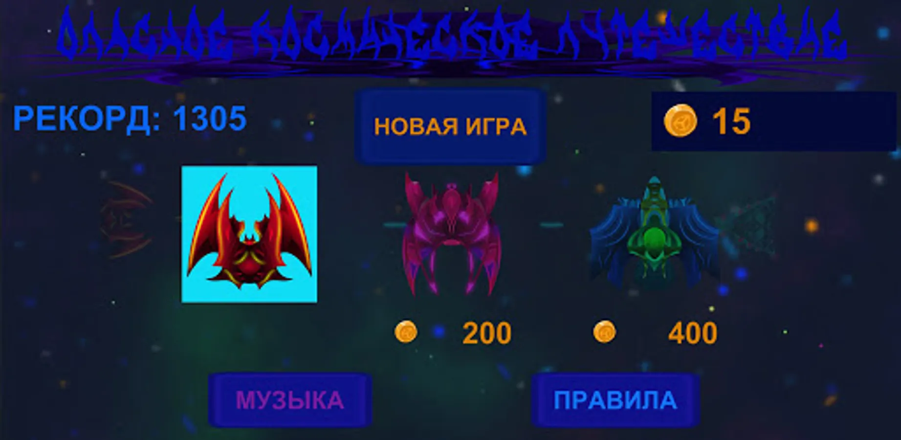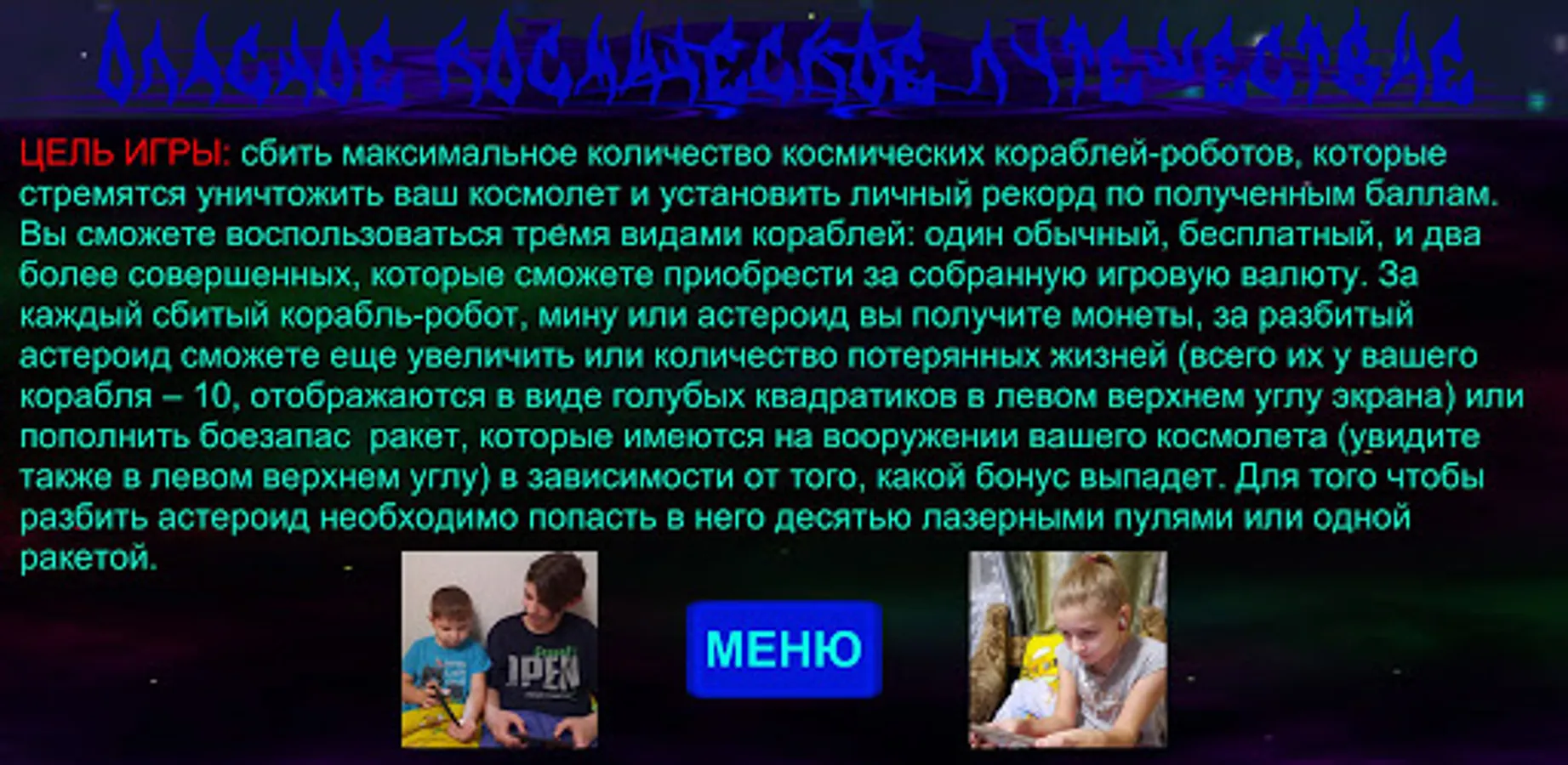 Purpose of the game: shoot down the maximum number of spaceship-robots, which are trying to destroy your spaceship and set a personal best for the points received.