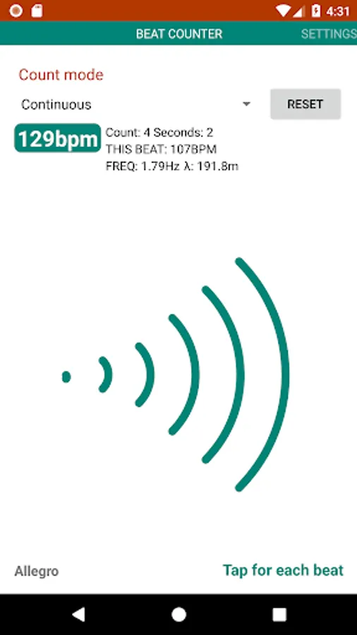 Quickly count a music or heart beat and find its beats per minute (bpm).