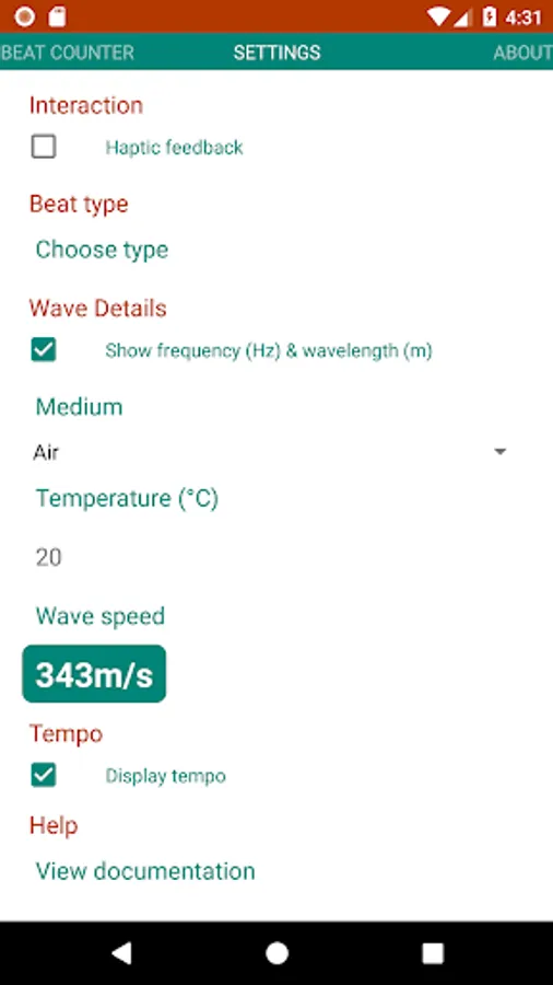 There is an optional vibration feedback for each beat tapped and ability to display the current tempo.