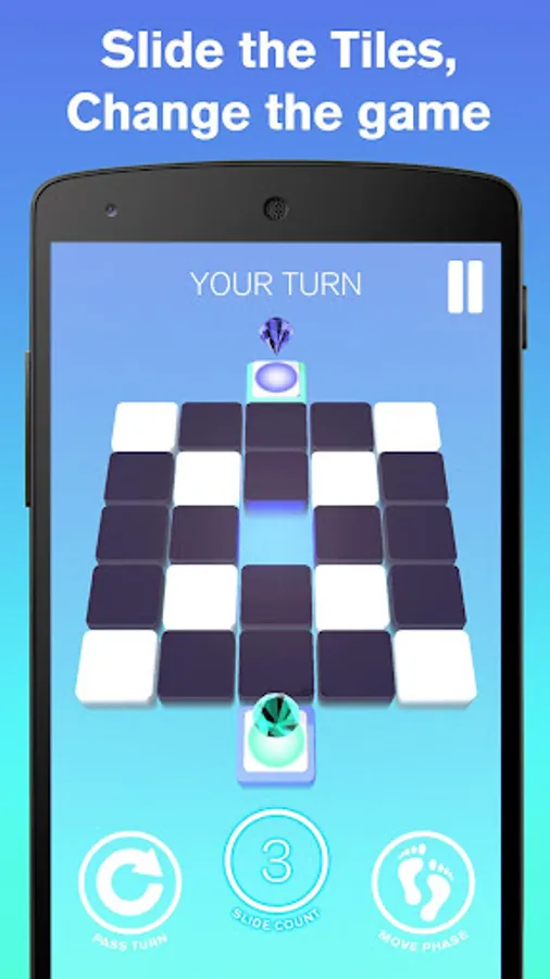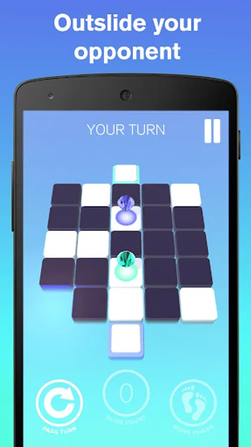 Slide the tiles to mix up the board and create new paths, isolate your opponent, and push yourself towards your goal. Block your opponents path and force them to slide away, or retreat.
