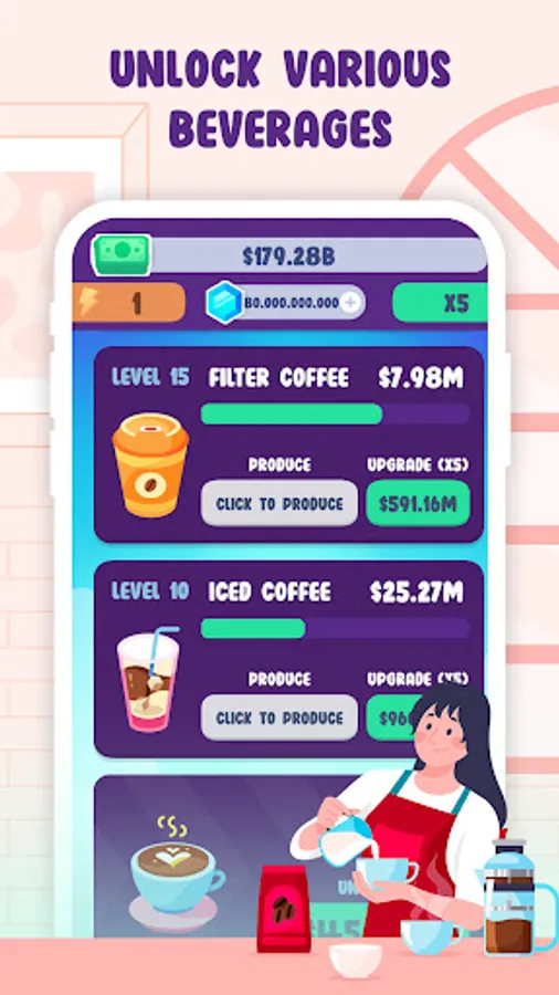 You are a beverage shop owner in this idle clicker tycoon game