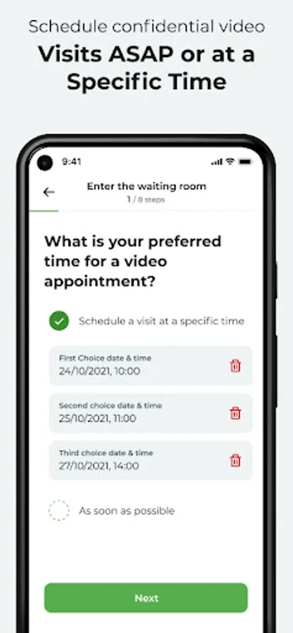 Our app makes it easy to book virtual appointments with doctors and specialists. Schedule appointments on your schedule - and receive care from the comfort of your own home.