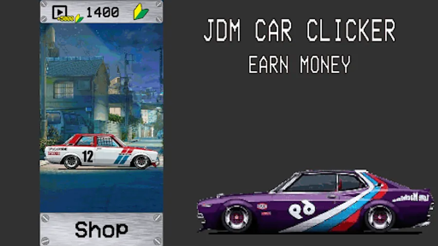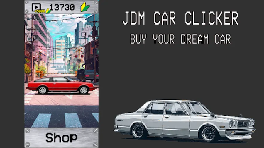 JDM Car Clicker - is a simple pixelart game in which you can earn money for the JDM car of your dreams. The games don't take long. Pleasantly complements the sensations - a phonk playing in the background