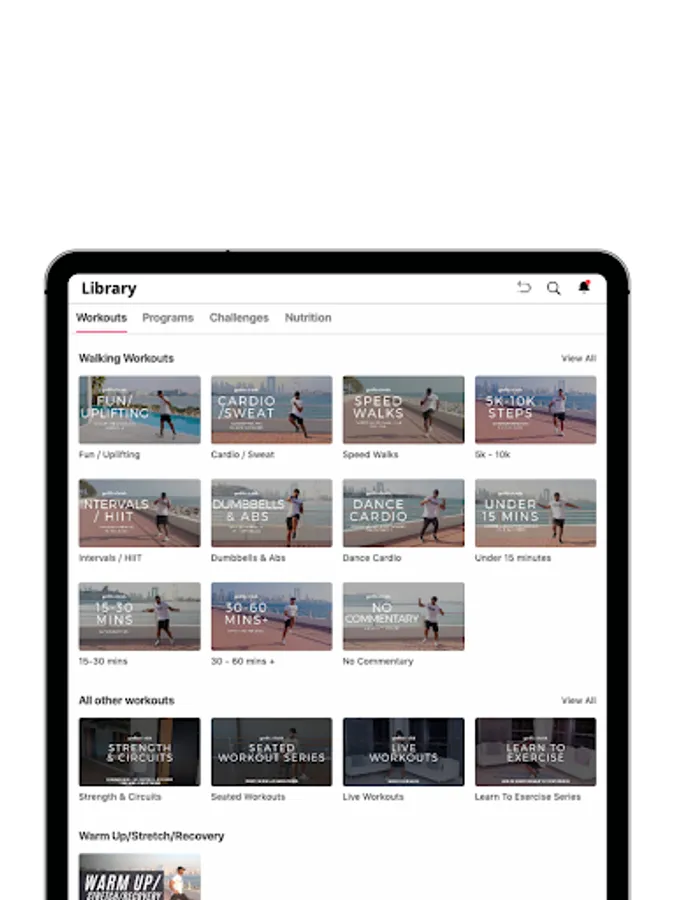 -Tailor your routine with seated workouts, strength workouts, yoga, pilates, and the "Learn to Exercise" series.