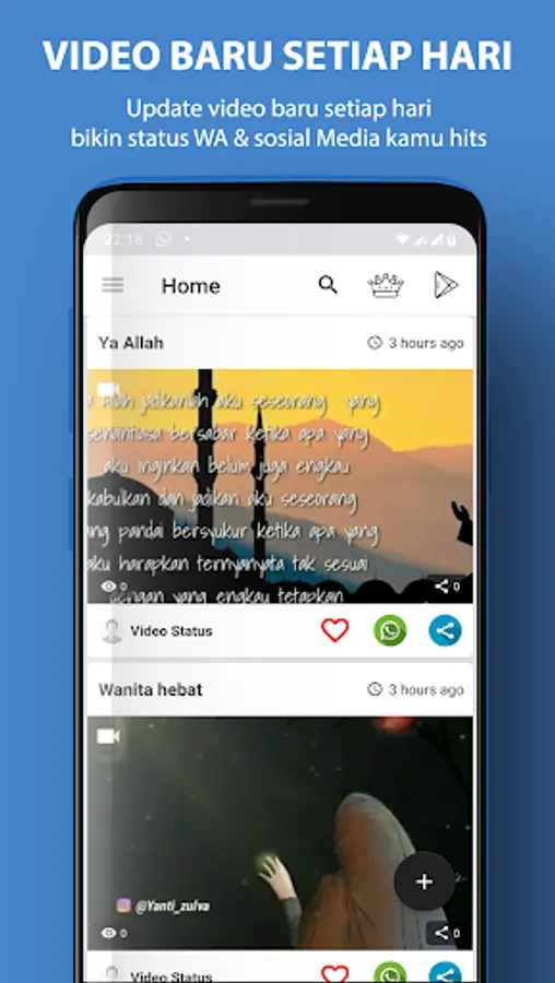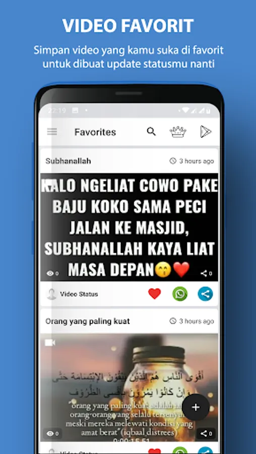 This application is a collection of various short videos on Islamic WA status from Indonesia and abroad. You can download and share Islamic WA video status with your social media friends.