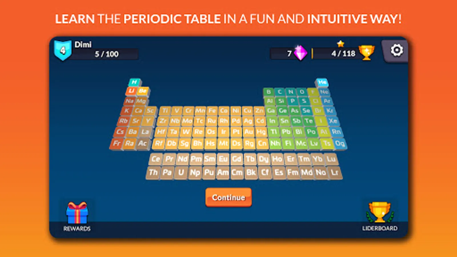 Through the educational game Periodic Table Adventure Learn, you will learn and memorize the 118 elements of the Periodic Table using gameification as a form of educational entertainment.