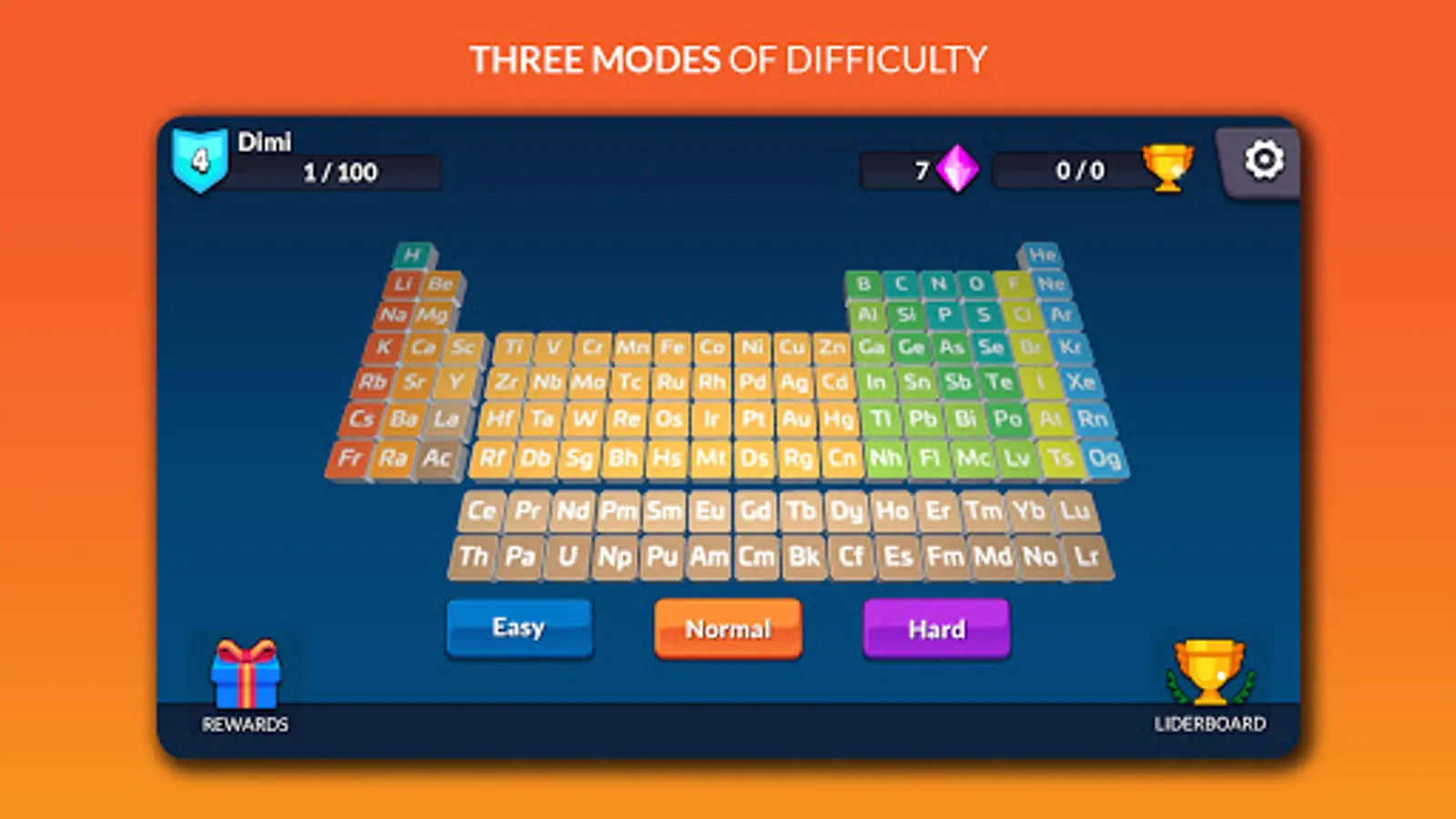 It is worth mentioning that Periodic Table Adventure Learn has three difficulty modes: