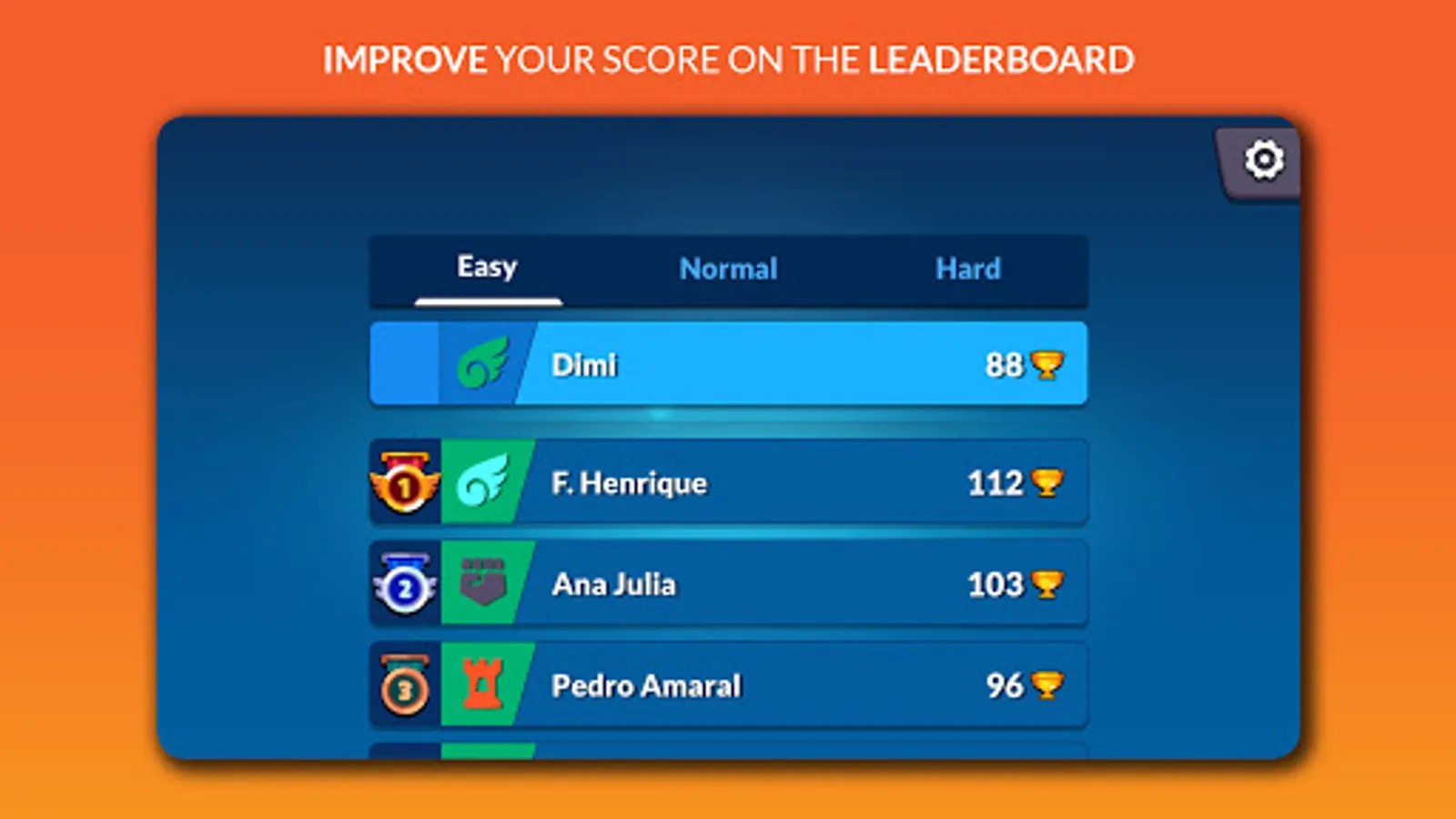 The game is automatically saved so that the student can focus on learning and having fun and when entering again he can resume his progress. The game allows the student to be increasingly competitive and seek to improve his ranking on the leaderboard!