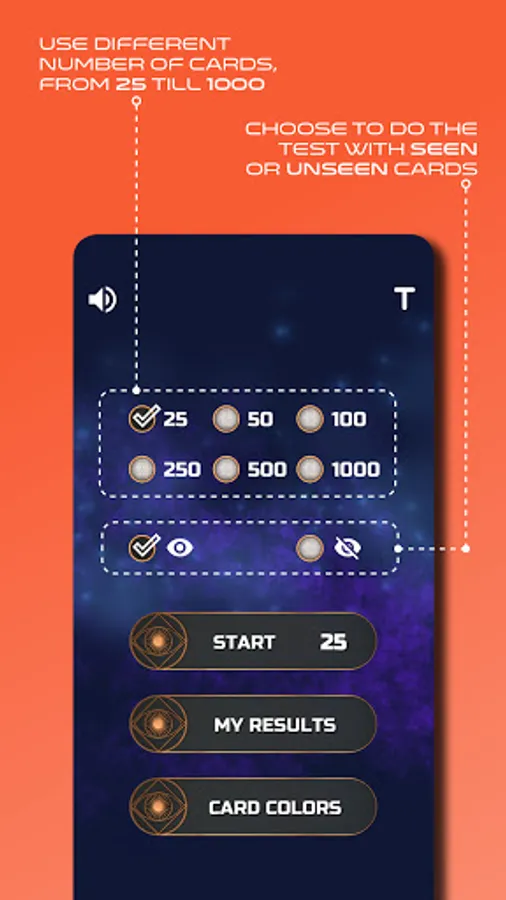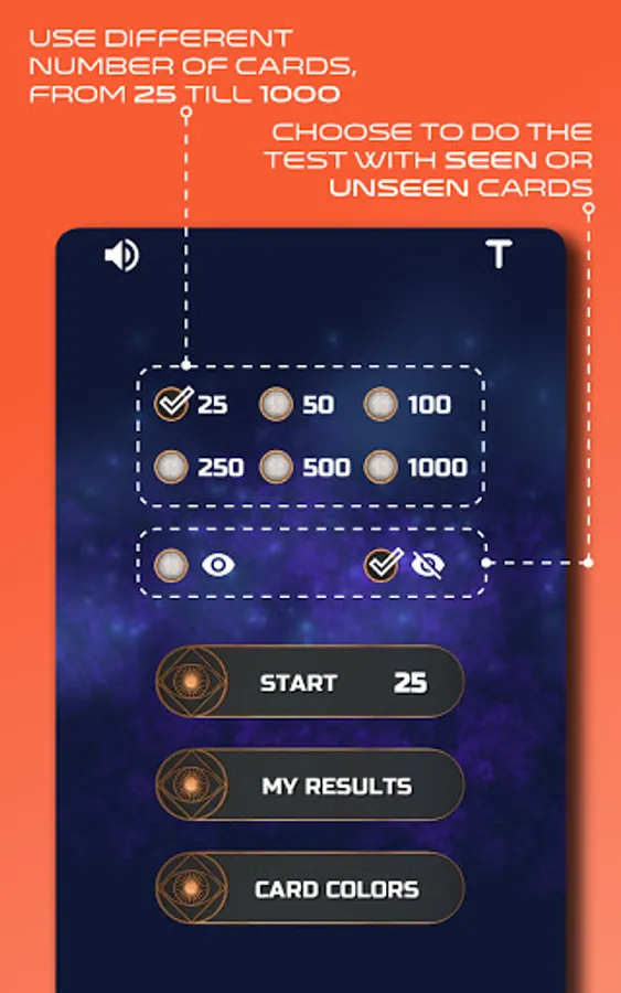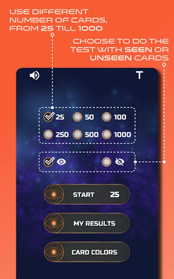 • Choose to do the test with seen or unseen cards, for more perceptive results;