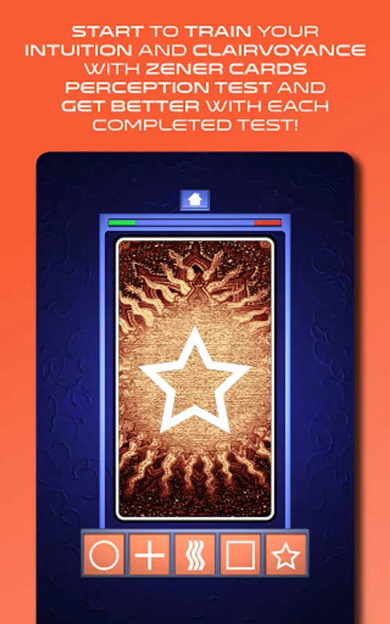 Start to train your intuition and clairvoyance with Zener Cards Perception Test and get better with each completed test!