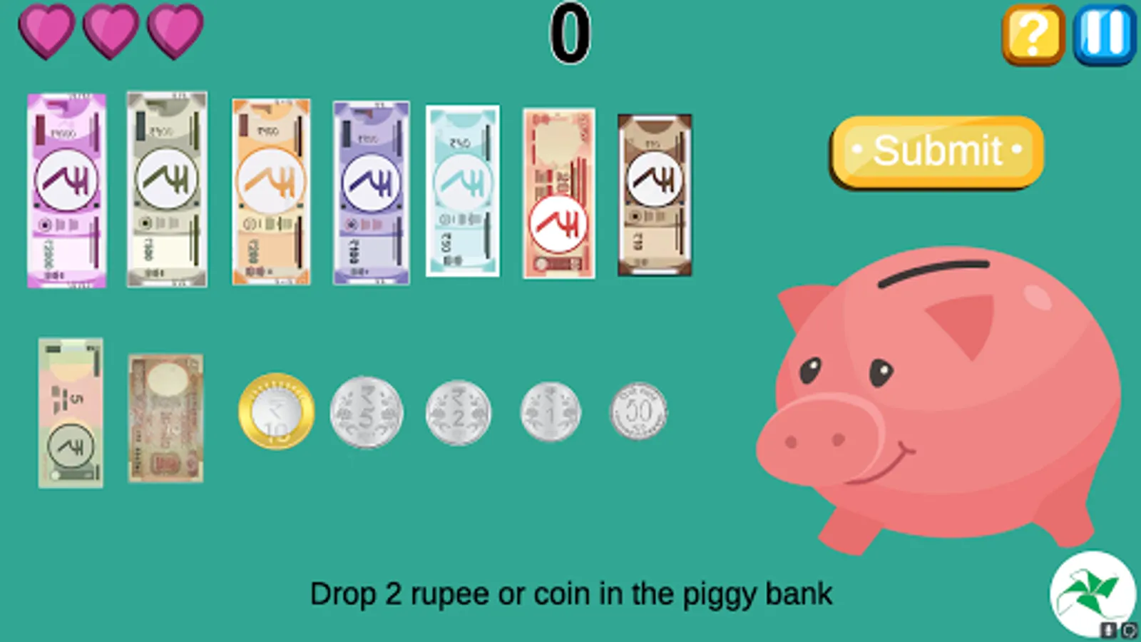 Money game is set of 4 games. In first game children play and learns to recognise rupee and paise. This game is rightly named KNOW YOUR MONEY. In the second games children collect notes and coins and save them in a piggy bank. Thus, the name SAVE MONEY. MAKE MONEY is the third game where children make different combination of notes and coins and save in the piggy bank. Fourth game is all about buying items in a vending machine. Therefore, the name SHOPPING.