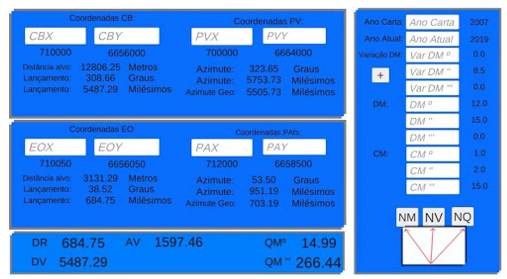 In the right corner, the Guidance Diagram is calculated, by which it is calculated: Magnetic Declination, CM and QM.