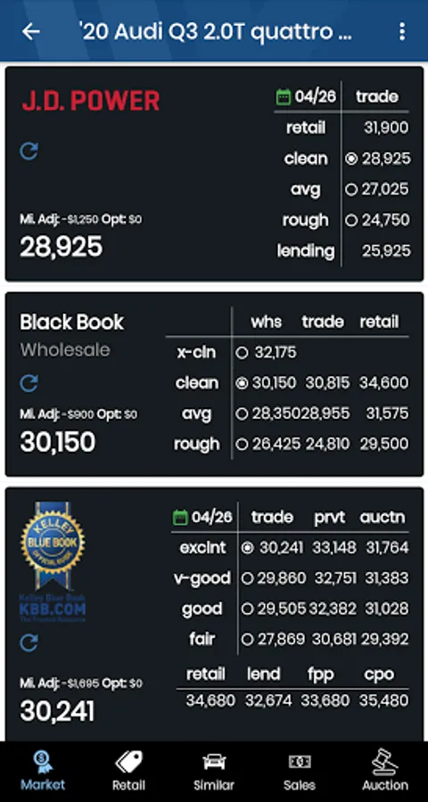 - Market Pricing using realtime vehicle price data, from over 40,000 auto dealers