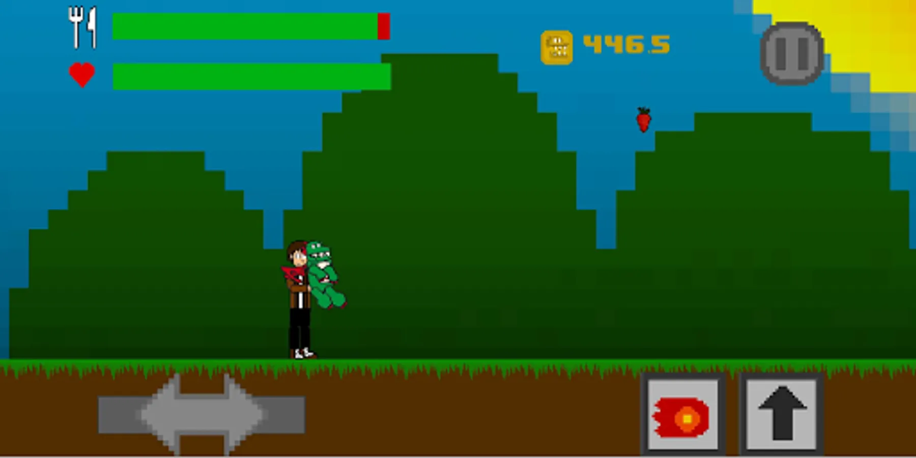 You have to keep him alive by getting him to eat the fruits that fall from the sky, but beware! There will be bandits coming to steal him.