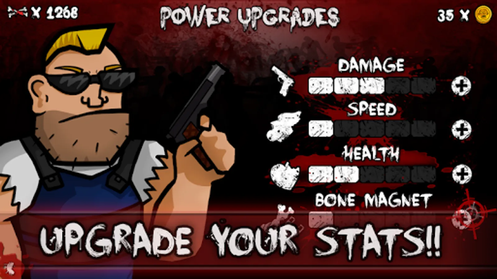 Continuous play is rewarded - over time, your character grows in power. Upgrade and then take out zombies faster while lasting longer. Blasting your way up the leaderboard is a progressive battle, so keep at it!