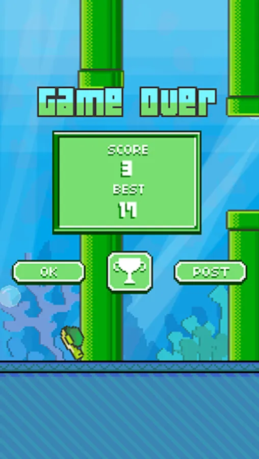Flappy Turtle! Where it lacks in originality it makes up with addiction. Flap your way through pipes, see how many you can get though without touching them! Turtles flap better than birds anyways!