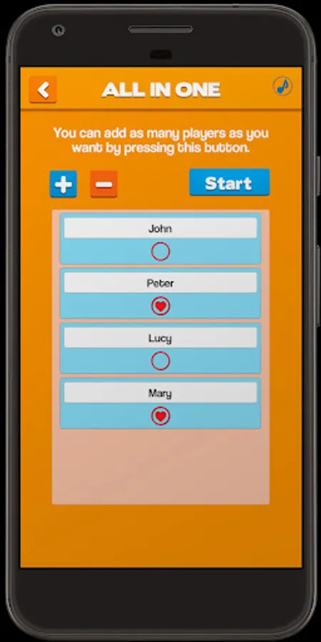 You only need the game installed in one device and in the menu enter: "All in one". Then a screen is displayed in which players can be added and put their names, the turns will be in the order in which they were added, once in the game, the card will be thrown one by one according to the name that currently indicate the turn.