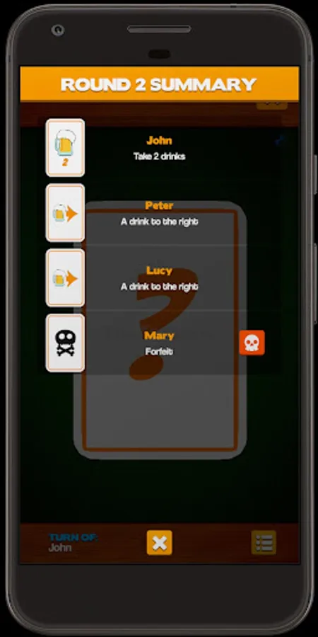 Each player must have the game installed on their own mobile, and already in the game, everyone must throw at the same time and get a card, put all the devices on the table, and one by one reviewing what their card says and act accordingly to that, at the end proceed to a new round in the same way, and so on until everyone decide to finish the game.