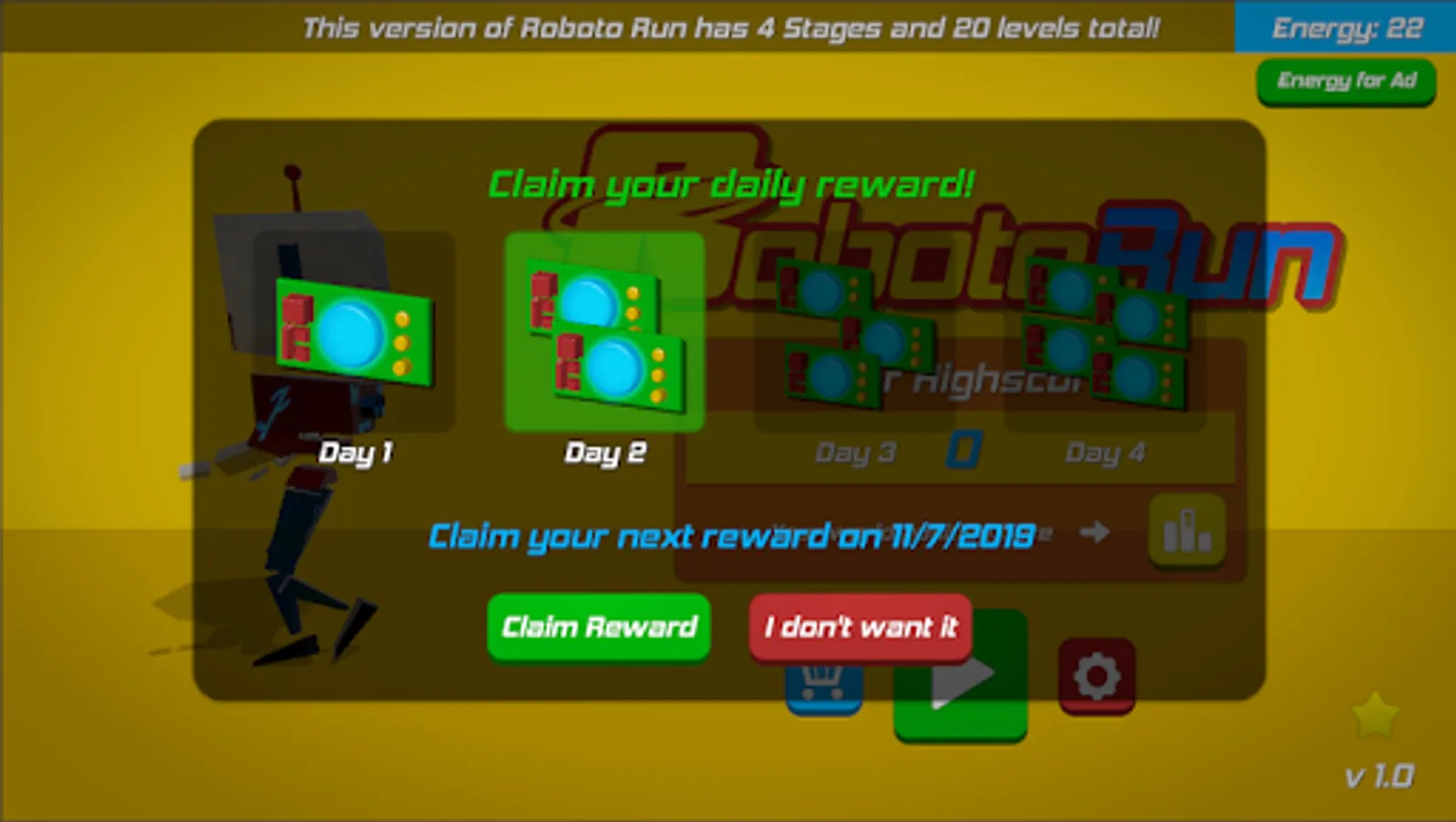 Test your reaction time and your reflexes using Roboto's skills in all kinds of platforms with risks, enemies, barriers and many other varieties of things that you can find in each level of the game.