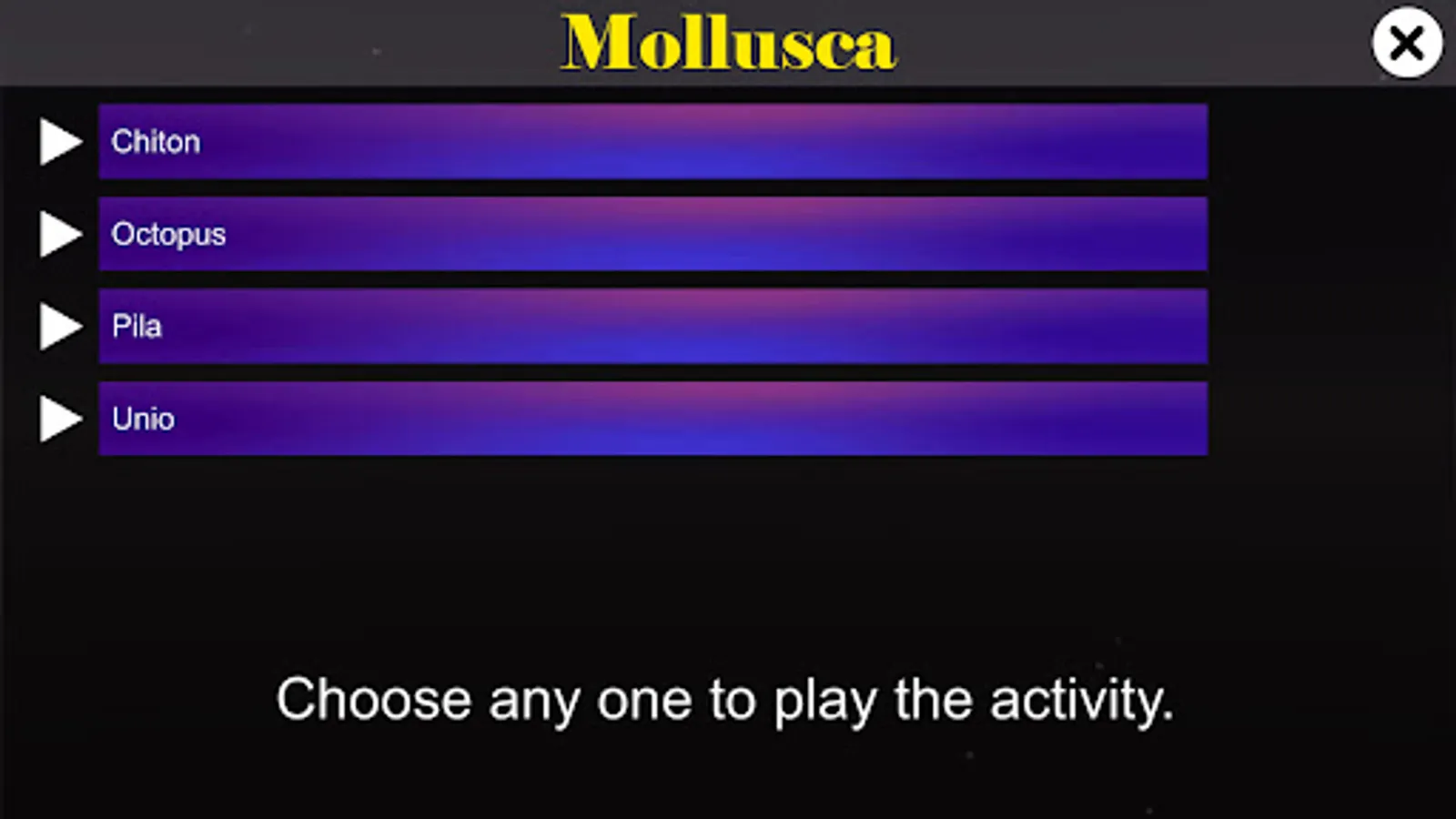 Let us explore the offerings of the “Diversity of living: Mollusca” app. The user first gets acquainted with various glassware and apparatus used in the Diversity of living: Mollusca. The user is then guided by the app to perform the activity with explicit instructions. This robust application is a great teaching and learning tool for students, educators and teachers wanting to study or teach about the Diversity of living: Mollusca.