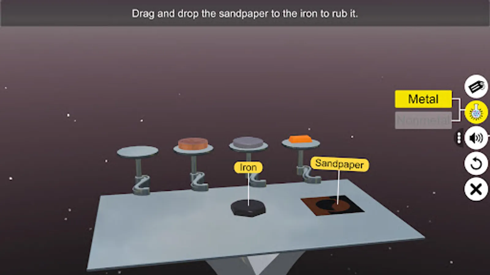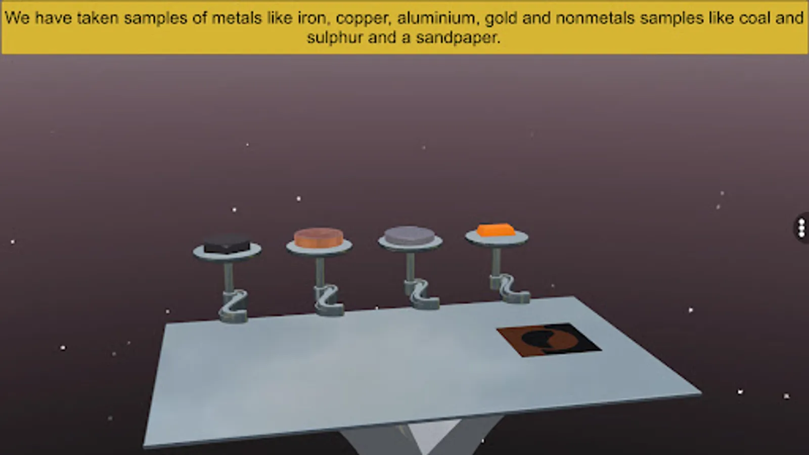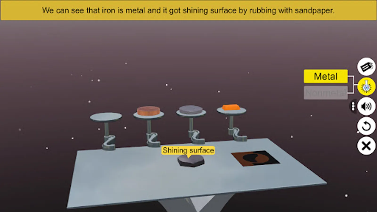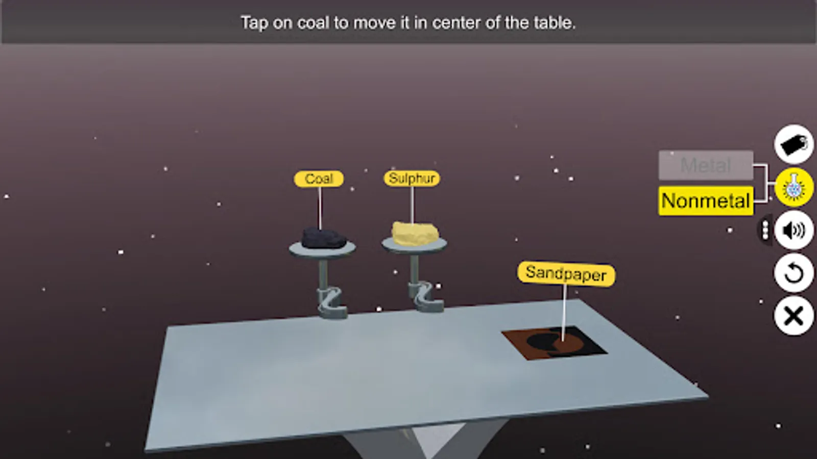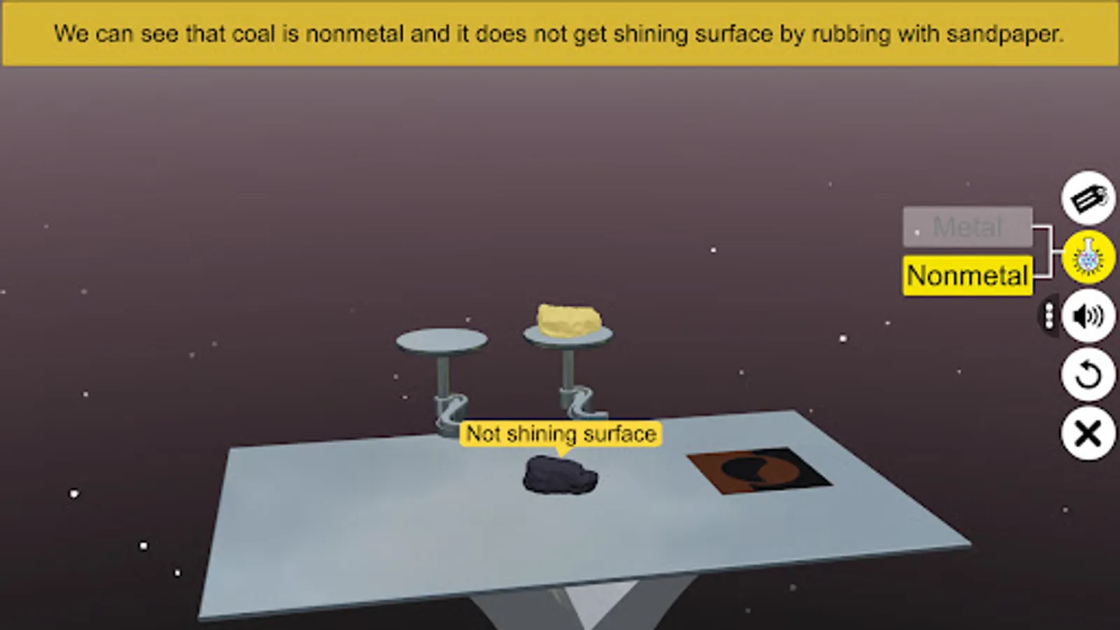 - Tap and Pinch Zoom - zoom into and identify all about lustre of metal and nonmetal.