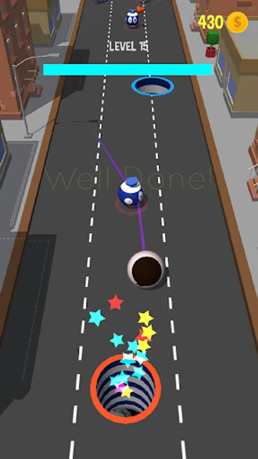 This game is billiard like game in hyper-casual style. To unlock next level you should push 70% balls into the holes.