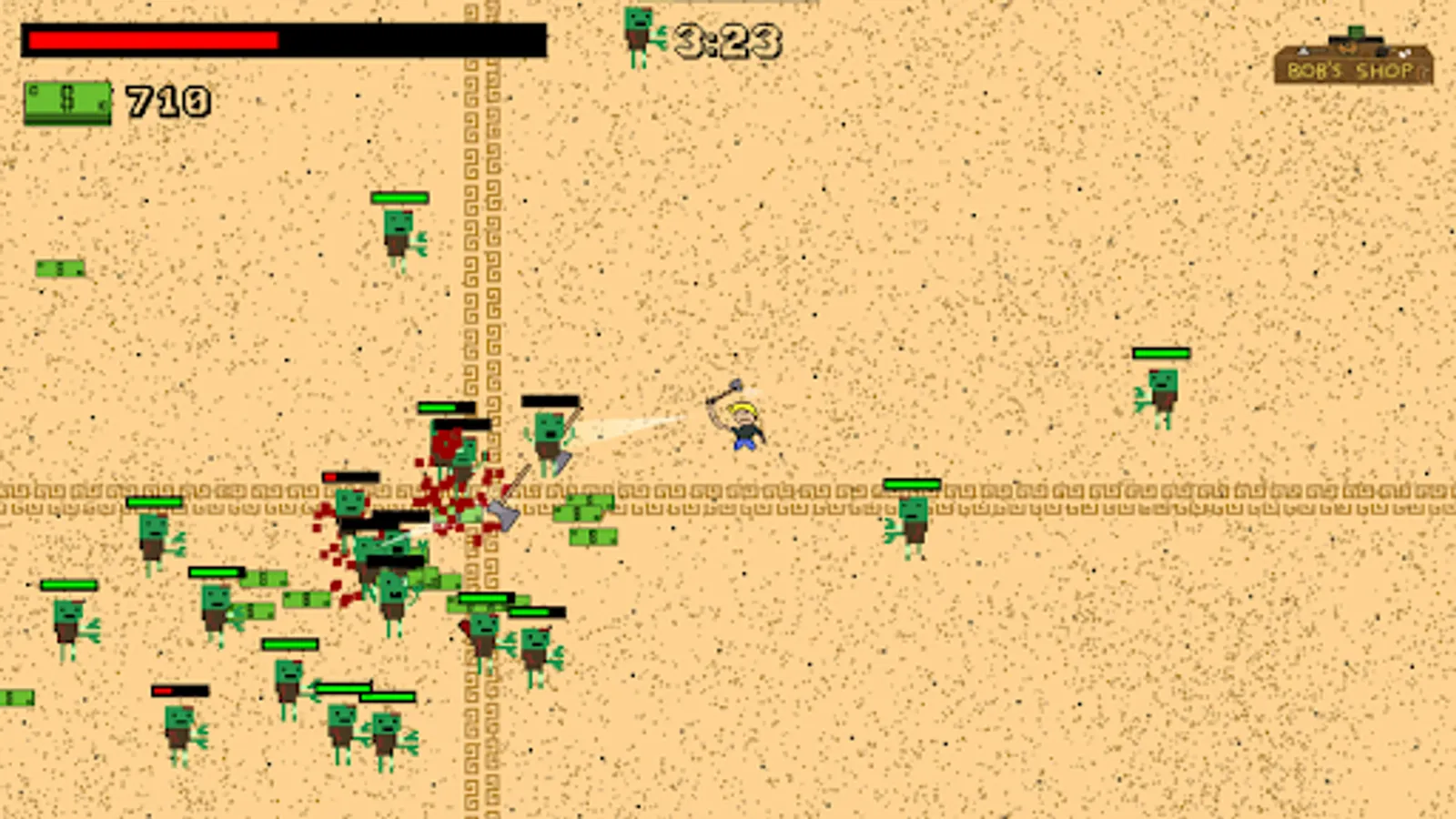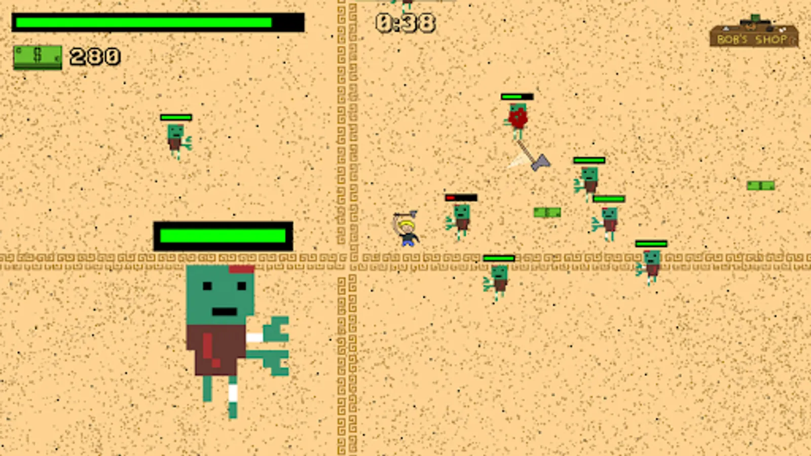Survive as long as you can by fighting hordes of zombies and upgrading your character with a lot of different upgrades with the money you get from them!