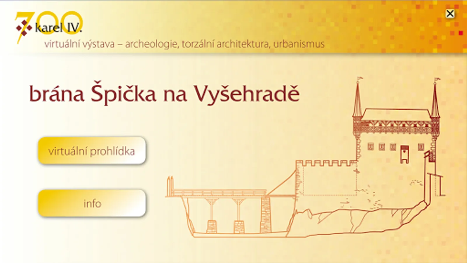 Digital model of the gate tip was created for a virtual exhibition of Charles IV. and Prague - town planning, building types and selected construction projects (www.praha-archeologicka.cz). The exhibition was supported by the Ministry of Culture of the Czech Republic as part of national celebrations of the 700th anniversary of the birth of Emperor Charles IV. and it is included in the program strategy AV21.