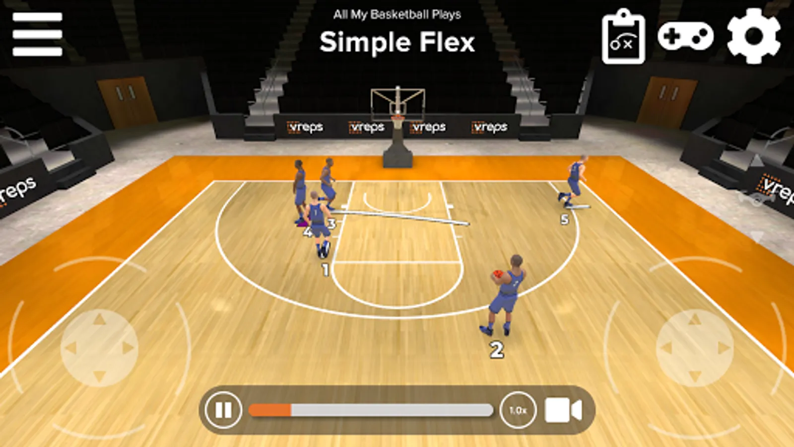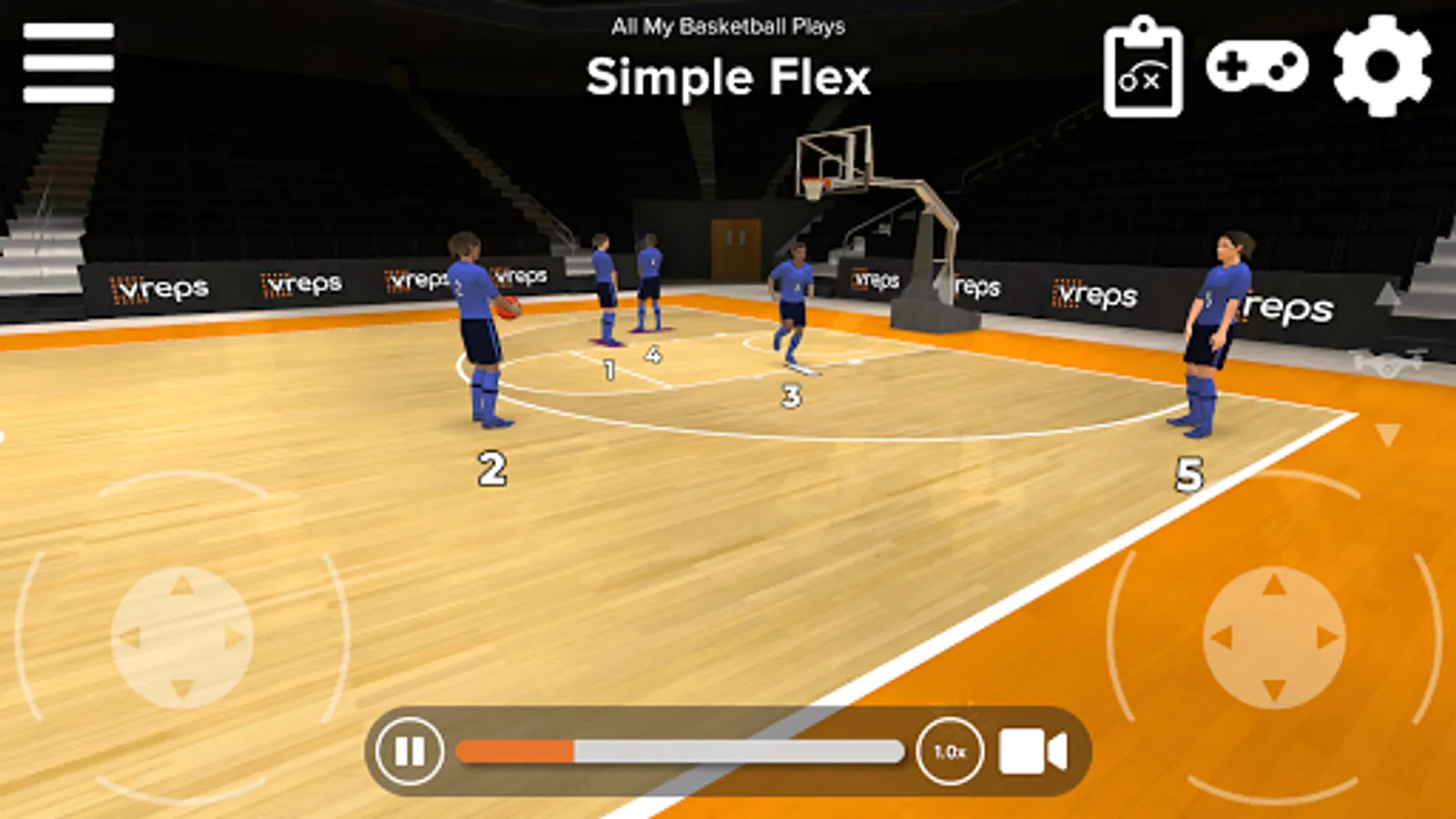 Create plays through our Web Application (vreps.us), and watch them through the app in 3D. Experience plays from the perspective of any player on the court, or roam freely to explore the play from any angle. Interact with your plays in a whole new way, and move from X’s and O’s to a new virtual way to prepare.