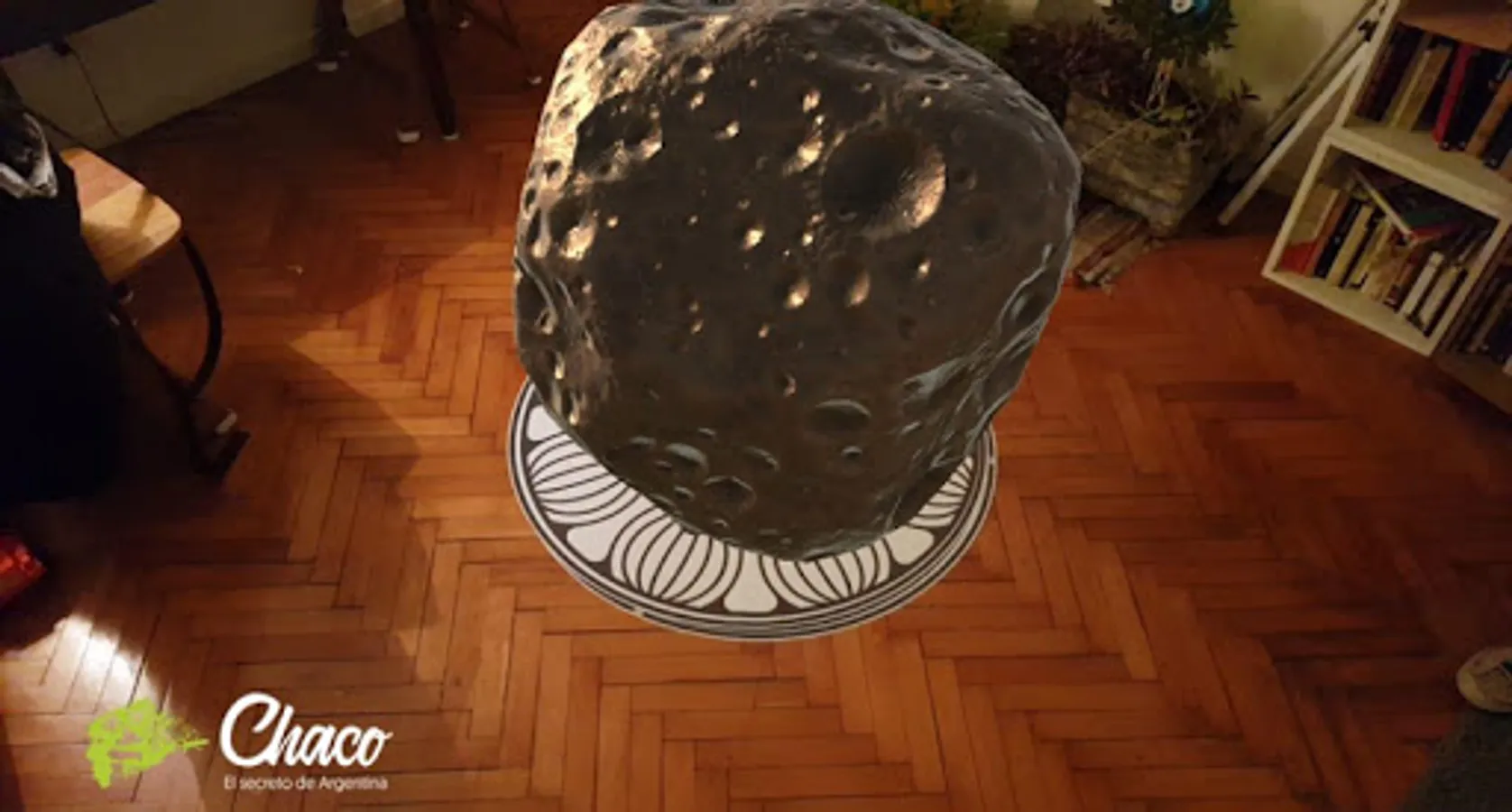 Point to it with the camera of your device and examine a Chaco meteorite, listen to a brief story about the astronomical phenomenon that gave rise to Campo del Cielo four thousand years ago.