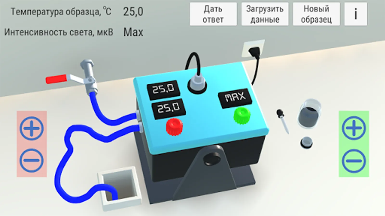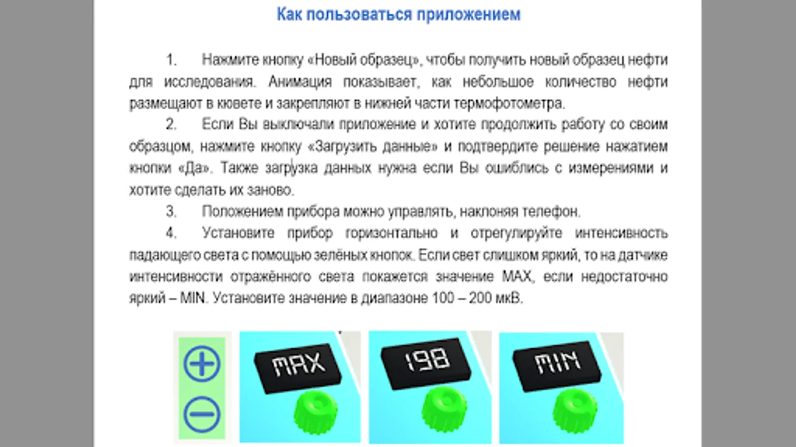 The application simulates the operation of a laboratory thermophotometer. The program has a built-in instructional manual and it is convenient to use it as a visual training aid.