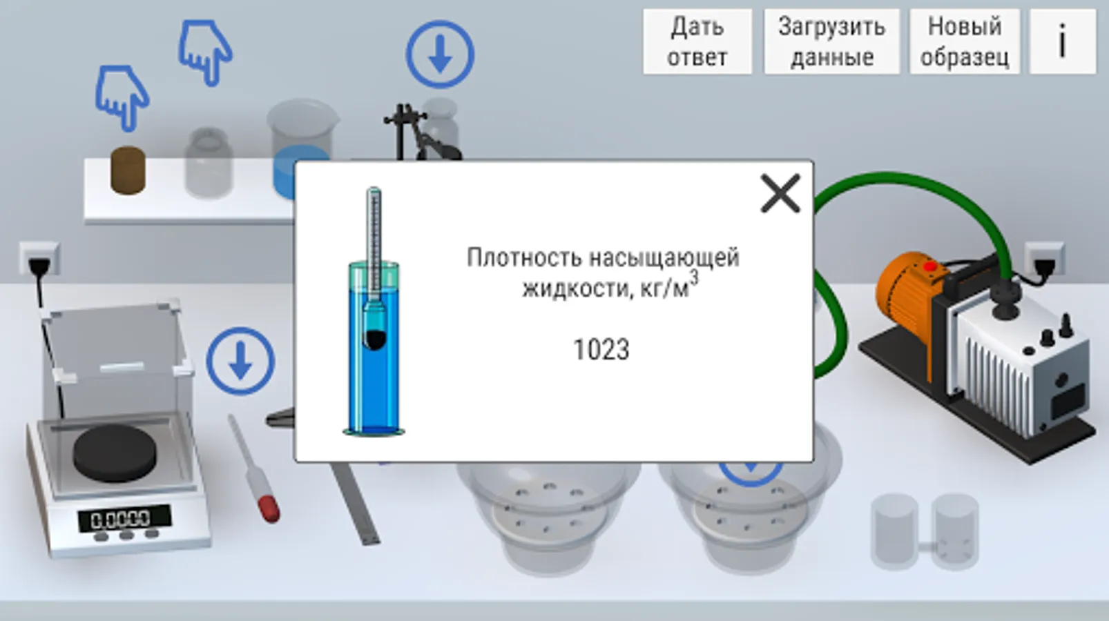 Virtual laboratory work on petrophysics "Saturation under vacuum, porosity"