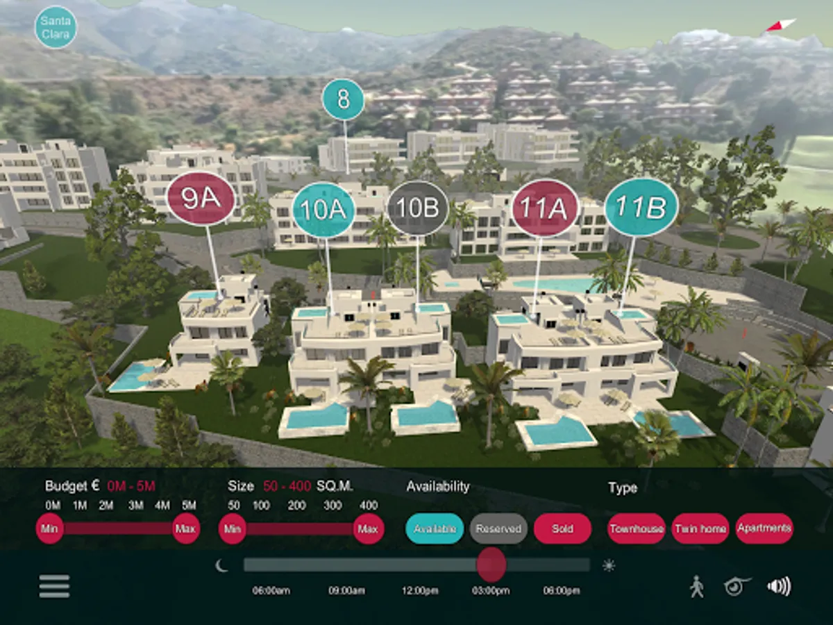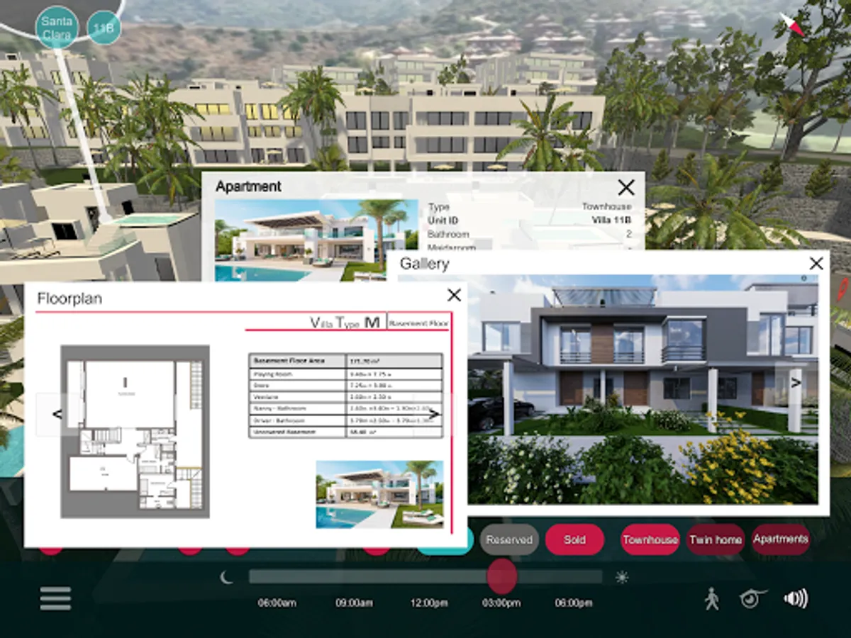 Interactive 3D Masterplan Application is a tool that helps salespeople in the real estate industry to showcase properties to their customers in person or remotely. The application offers extensive functionality, including search by name, location, cost, area size, availability of residential property and other important features.