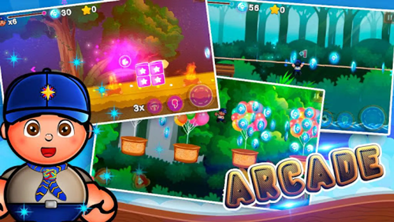 Join Maxi and the other pioneers in the fantastic adventures of being an Explorer of the King. Where you should perform challenging actions and searches to collect as many stars as possible. But, I will not be so easy, you will be challenged by insects, snakes, arachnids, worms, bats and even the same evil.