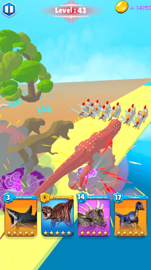 To survive in the dino bash epic race, you should grow your dinosaur as big as possible! Eat more meat and evolve from a small Velociraptor to a great T-Rex! Make your dino dash crush anything & leave other dinosaurs no chance to bite you!