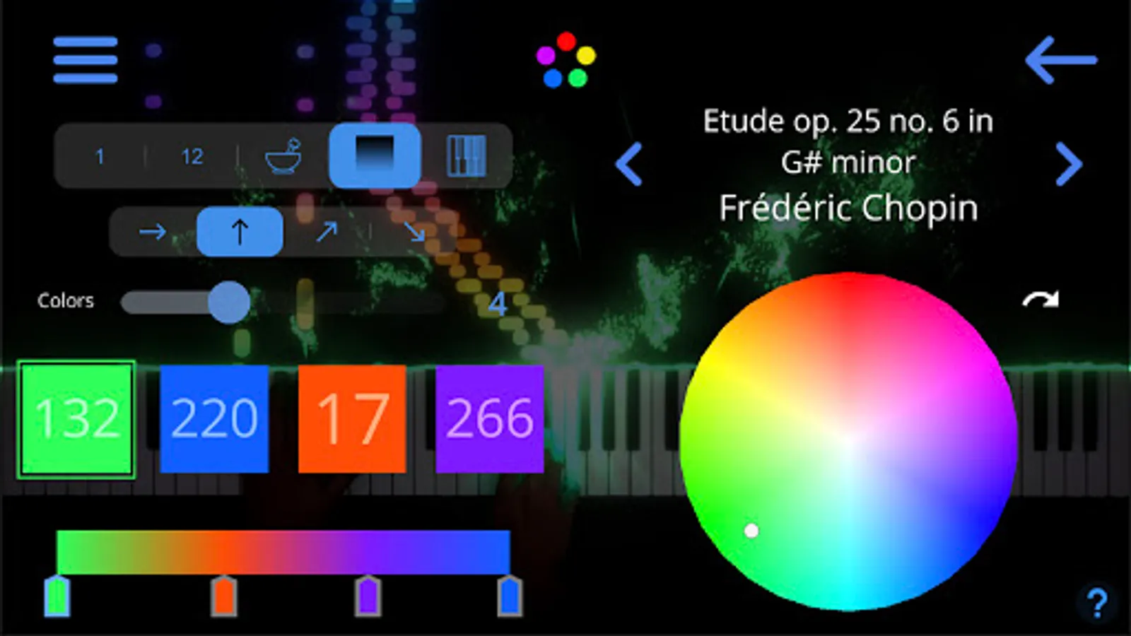SeeMusic lets audiences see and understand musical harmony through color. The user chooses a color for each of the 12 musical pitches. As notes are played, the app visualizes each note using the color chosen for that pitch.