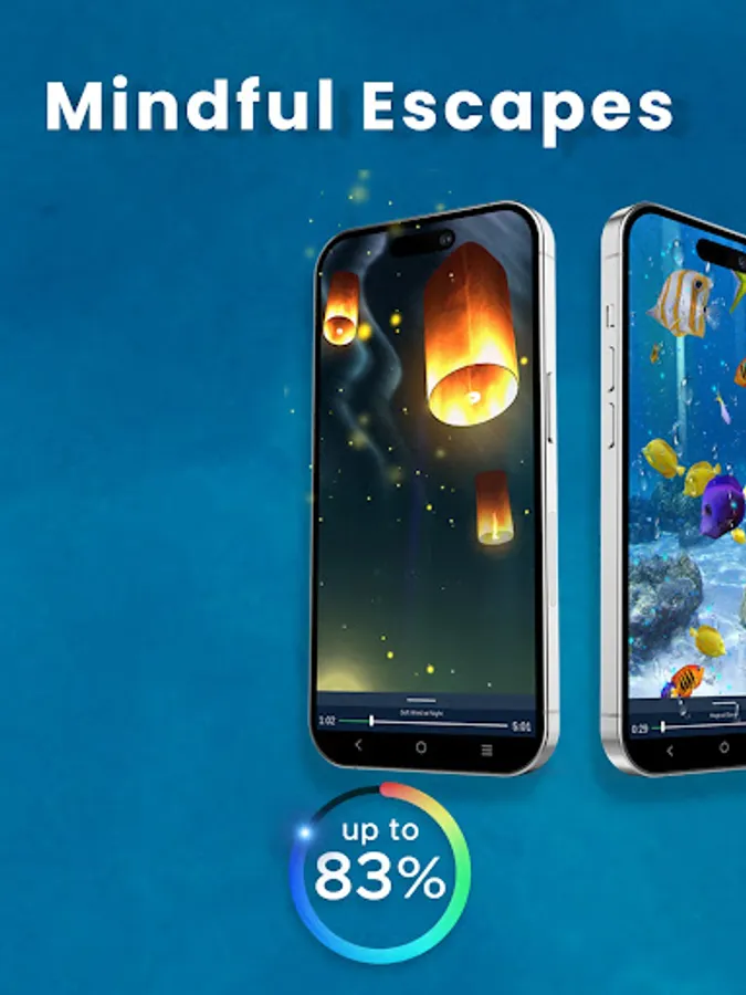 In this anxiety relief hypnosis app, you can experience different immersive rooms like "Magical Ocean", "Sacred Geometry", "Metamorphosis" or "Caretta Paradise". All these immersive rooms have been carefully prepared by experts.