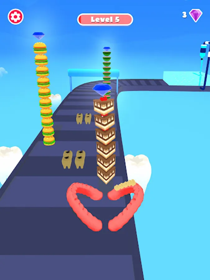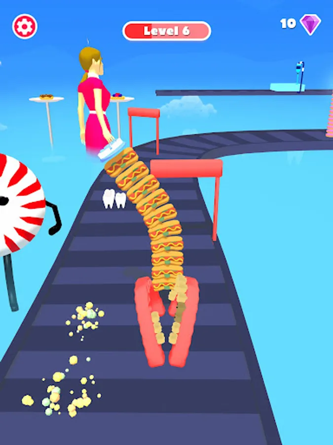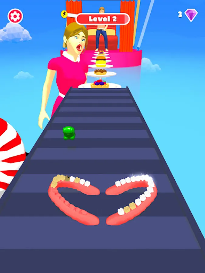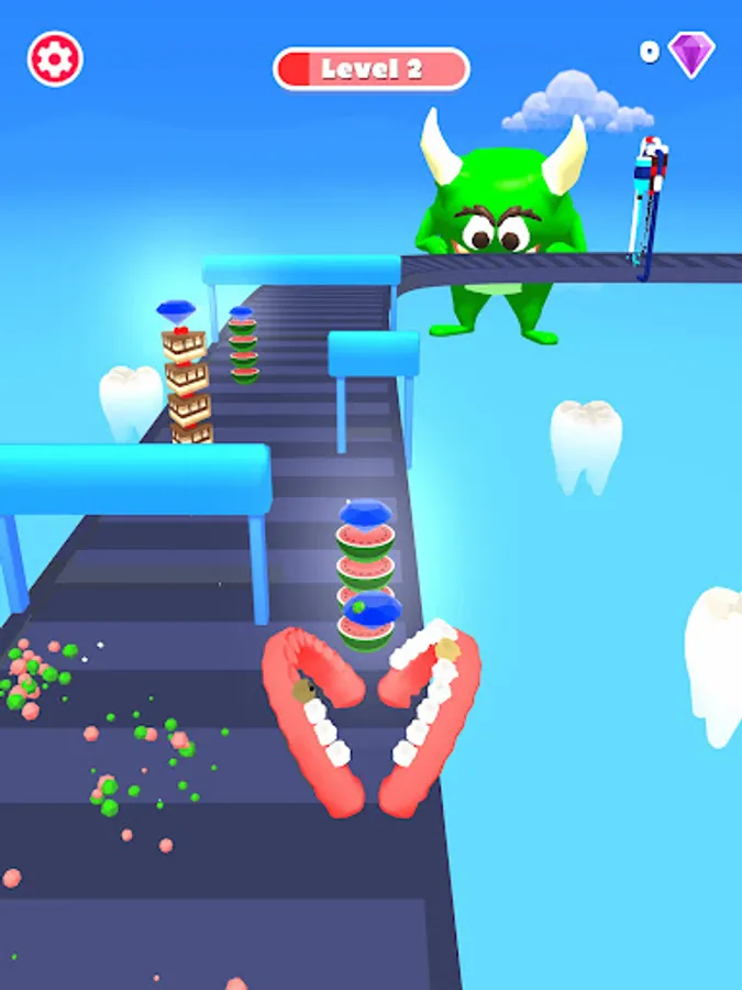 Collect, beautify and protect teeth. On the road, there will be monsters, candies and gummy bears trying to rot their teeth. Have a nice tooth by avoiding them. You can smash chocolates, cakes and hot dogs with your rolling teeth. If you use a toothbrush and mouthwash, you can get much nicer and brighter teeth. Don't forget to avoid coke and jelly beans! If you want to feel like an orthopedic surgeon or dentist, this game is for you :)
