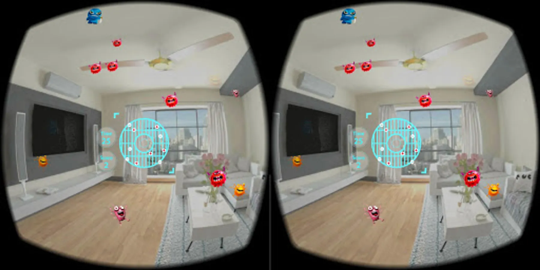 This application works well together with Google Cardboard, you may start the game and place your phone in the Google Cardboard holder to enjoy the gameplay in virtual reality. Alternatively, you may still play the game by moving your devices without the need for a cardboard device.