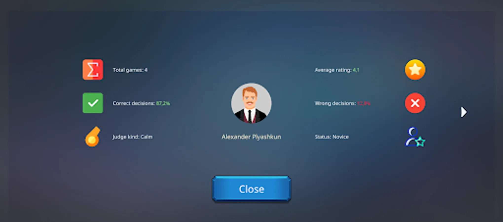 Create your own character and achieve desired goals! Read news after each game, take various awards and improve your personal statistics!