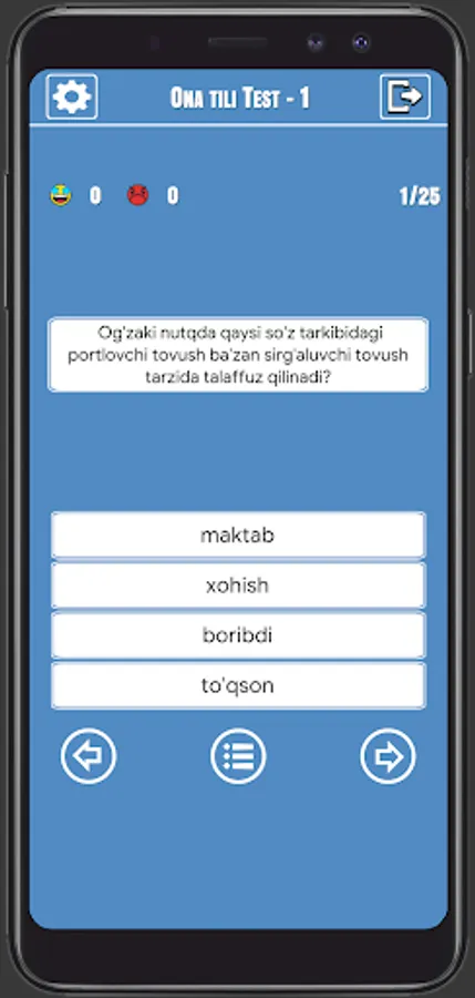 Ilovadagi umumiy testlar soni 9 975 tadan iboart. Har bir blokda 25ta yoki 30ta savol mavjud.