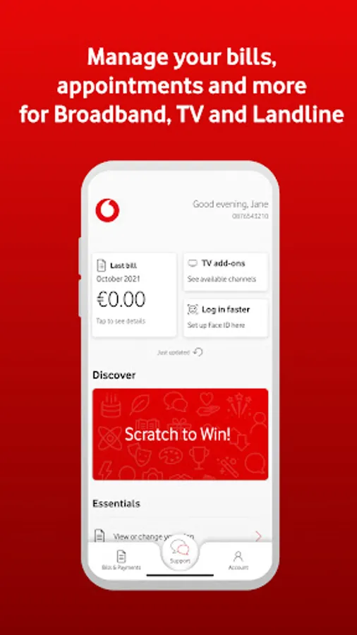 • Vodafone @ Home: manage your appointments for Broadband, TV & Landline, view & pay bills
