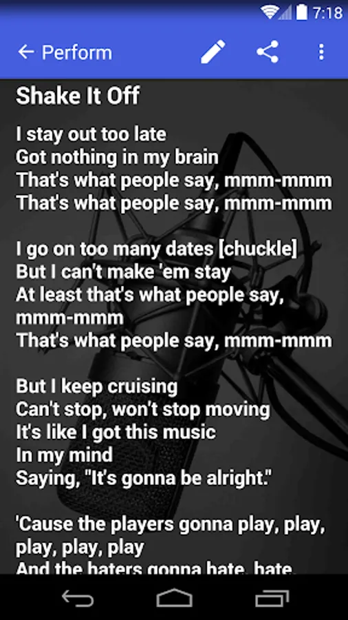 RoadWriter Lite is the premier songwriting app for songwriters, recording artists and music industry professionals who need to remain creative on the fly. Its sleek design has been crafted to transform your ordinary notepad into a platform fit for musicians. RoadWriter Lite has developed 2 modes to aid in transitioning your idea into your next hit record: Rehearse Mode and Perform Mode. While Rehearse Mode enables you to select your instrumentals and craft full songs with song structure (bridges, hooks, coda, etc.), Perform Mode gives you a full screen of your finished song in easily readable text against a contrasting background. Quickly edit any changes on the spot in a performance setting or recording booth.