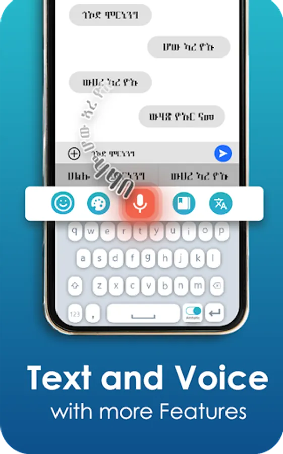 Amharic speech to text keyboard contains Amharic keyboard too. Where you can write text by voice in Amharic language. You can write text very fast by speaking as compared to typing in this Amharic voice keyboard.
