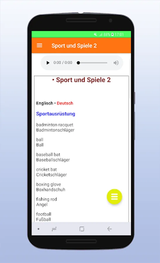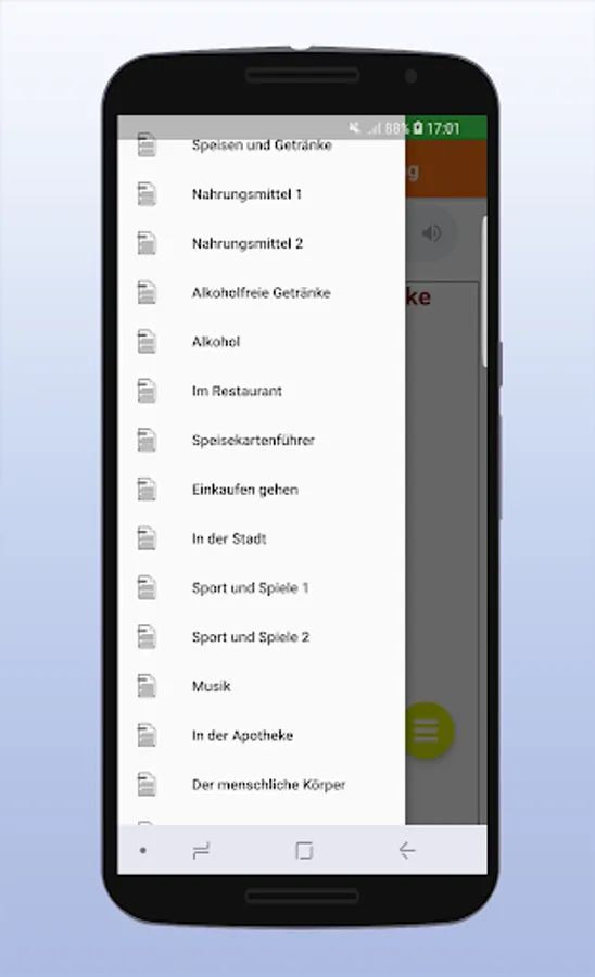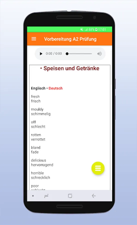 the most important words and phrases of the situation together; Starting from the German, the learner should speak the German translation himself.