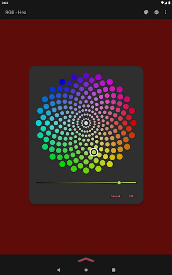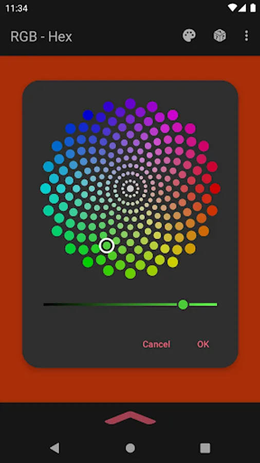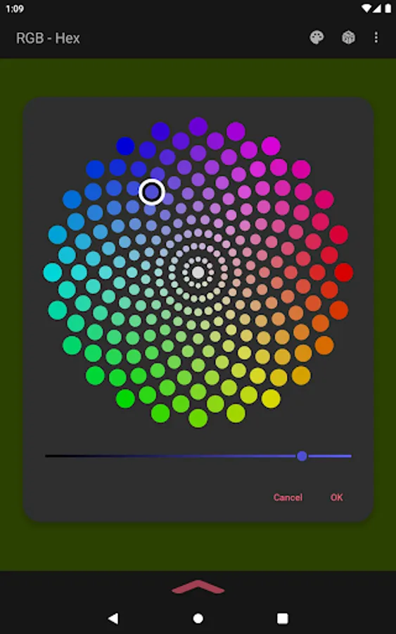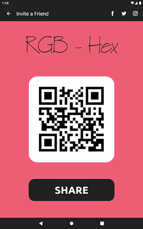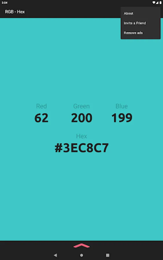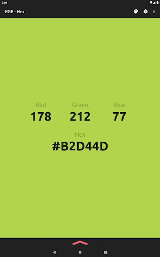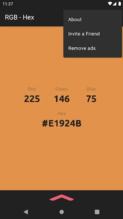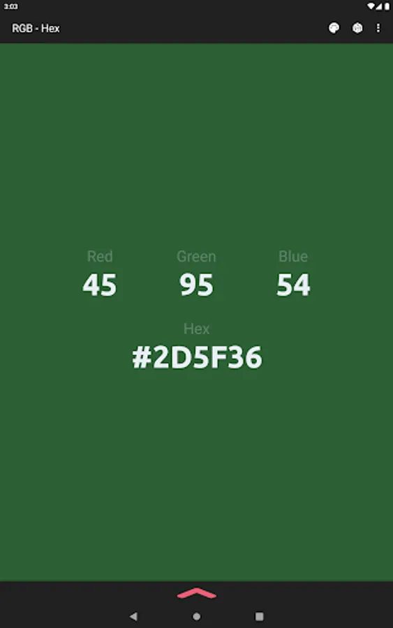 The app also acts as a color converter between RGB and Hex values. It will also show the converted values in HSV, HSL, and CMYK!