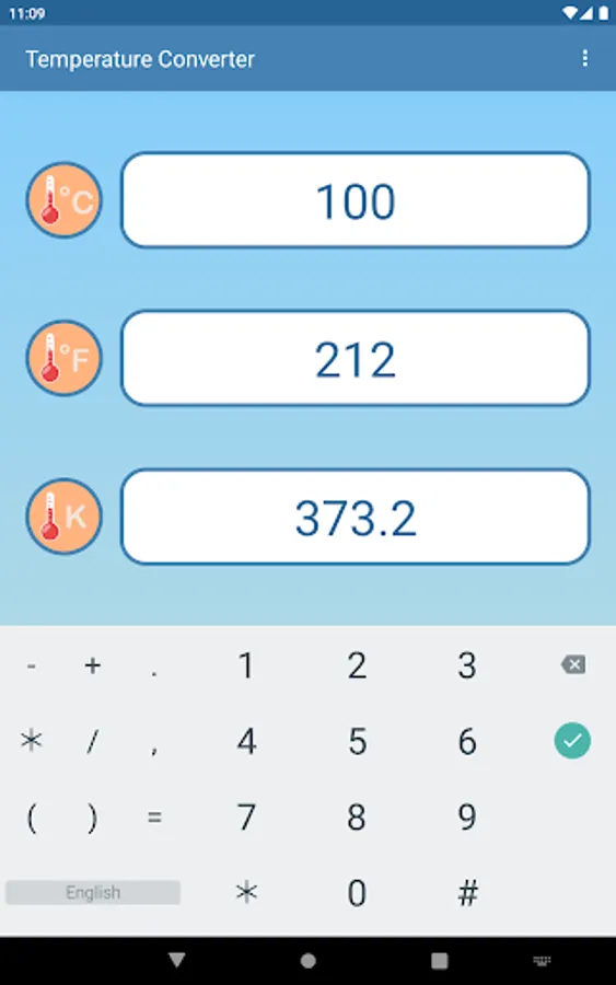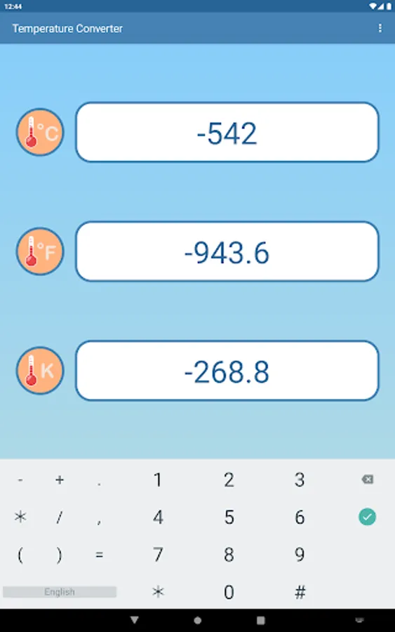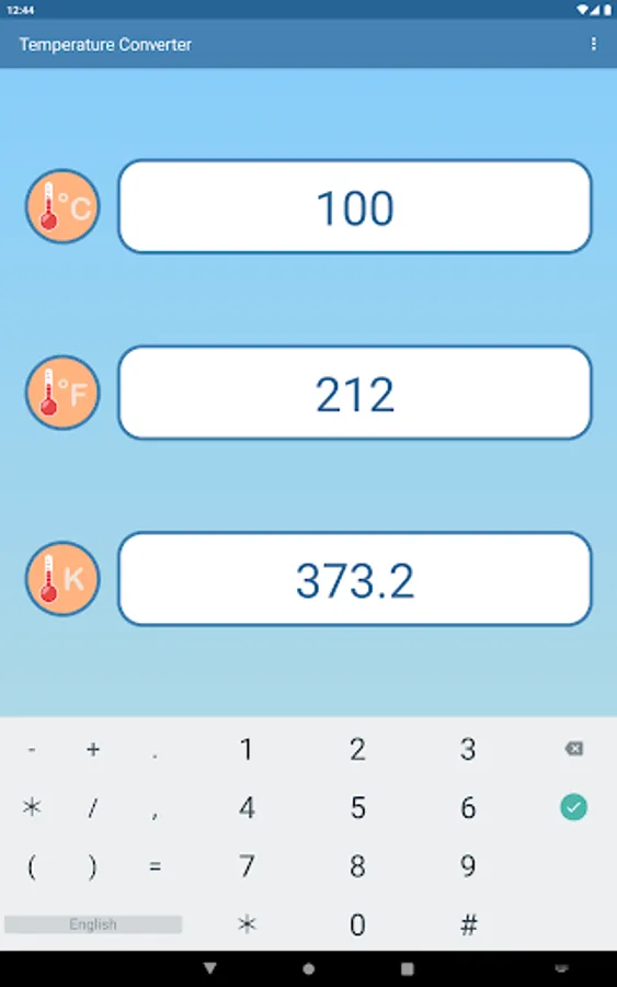 Temperature Converter is a perfect temperature conversion app that instantly converts temperatures such as Celsius (°C), Fahrenheit (°F), and Kelvin (K).